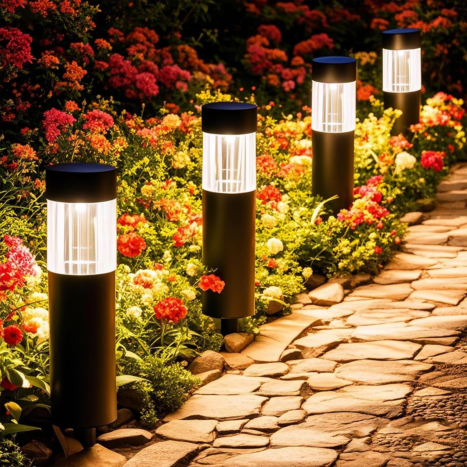 • 【DURABLE STAINLESS STEEL & ALL-WEATHER DESIGN】 – Crafted with rust-resistant stainless steel and IP65 waterproof protection, these solar lights withstand rain, snow, frost, and summer heat. Heavy-duty and maintenance-free, they deliver reliable lighting year-round and keep your outdoor décor shining.