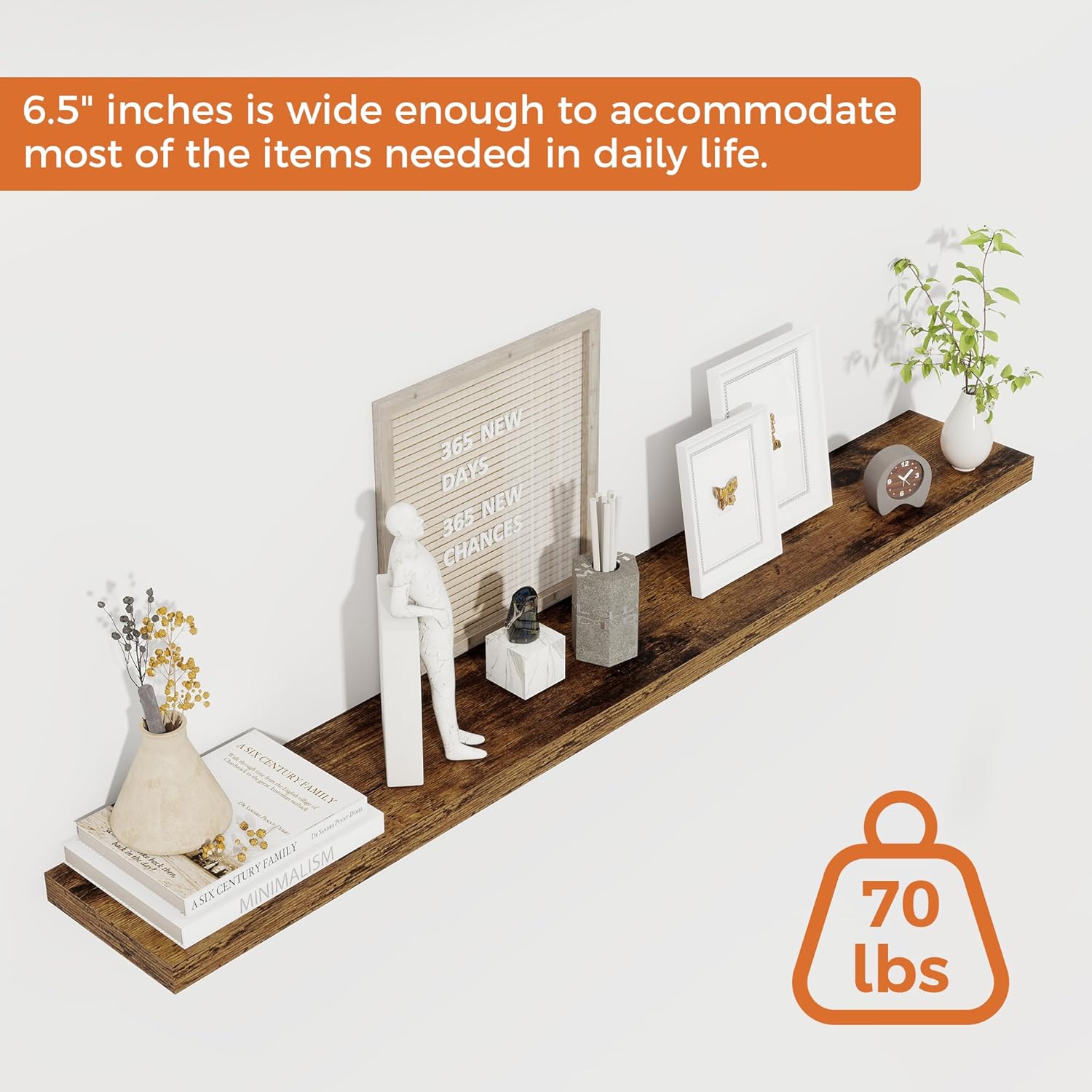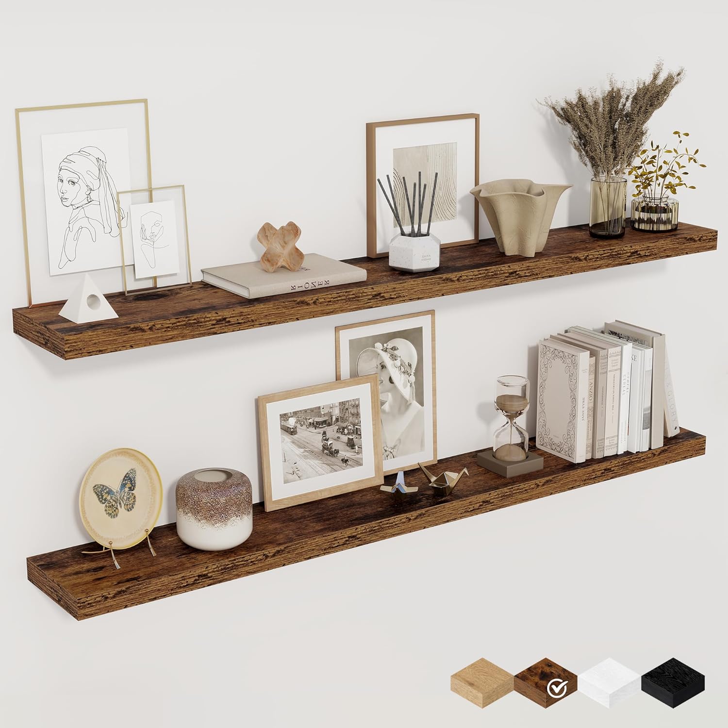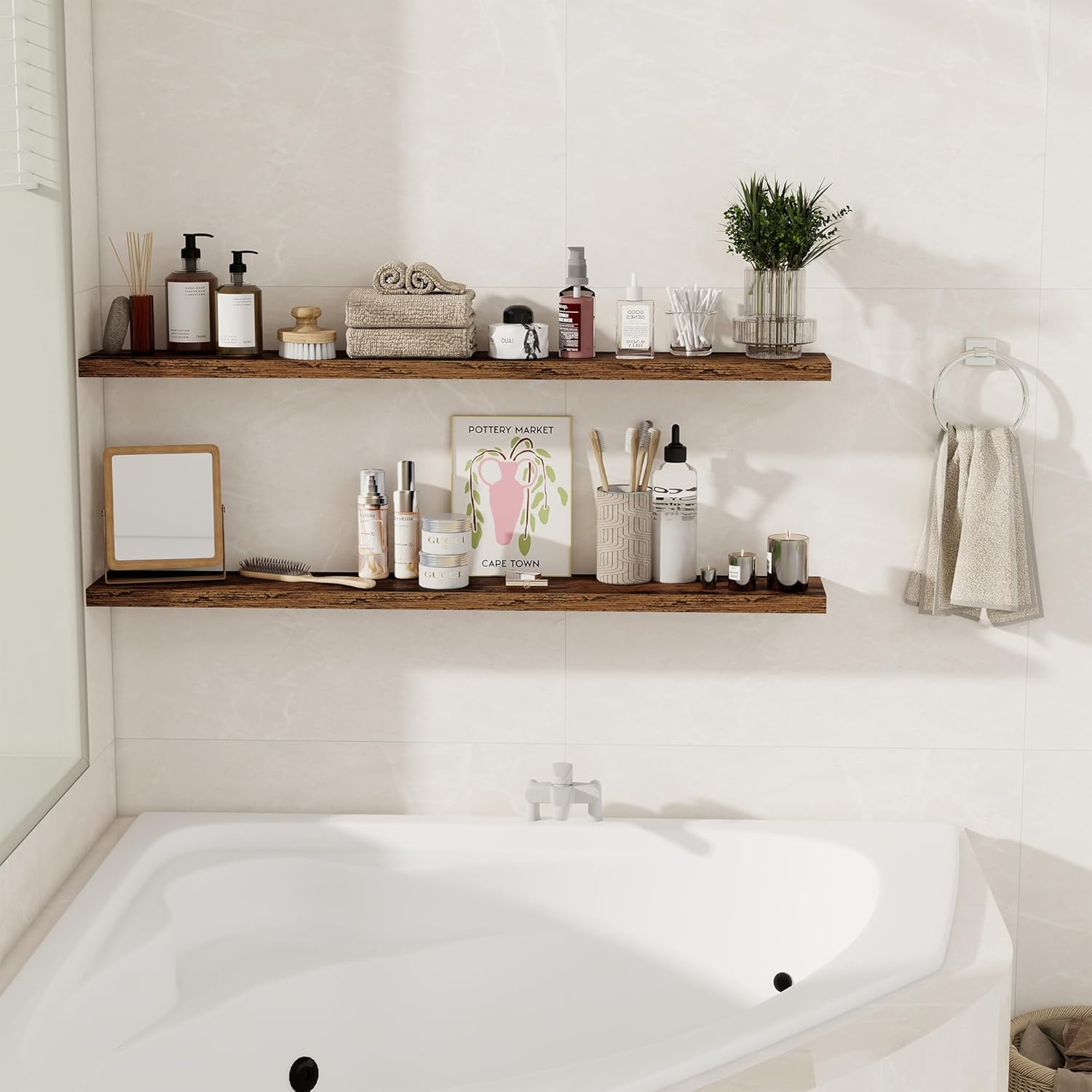 Floating Shelves for Wall, 48 Inch Floating Shelves for Home Decor, Wall Mounted Rustic Wood Shelves, Bathroom, Hanging Deep Shelf for Bedroom, Living Room, Kitchen (Rustic Brown, Set of 2)