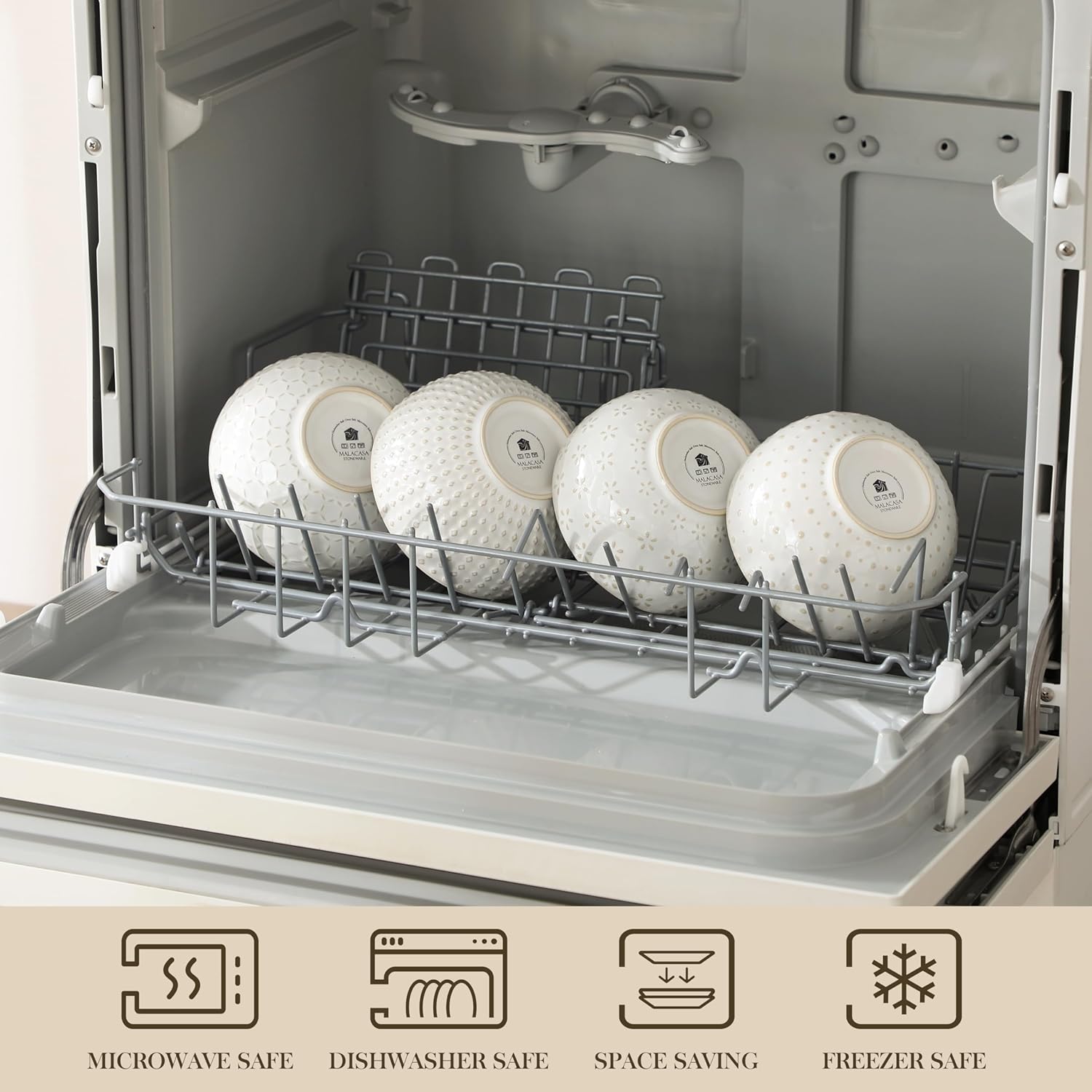 • 【Stackable and Dishwasher Safe】Dishwasher, microwave, freezer, and oven safe; you can wash the embossment stoneware bowls with detergent or put them in the dishwasher. The bowls can be compactly stacked to make plenty of room for other dishes in your kitchen cabinets