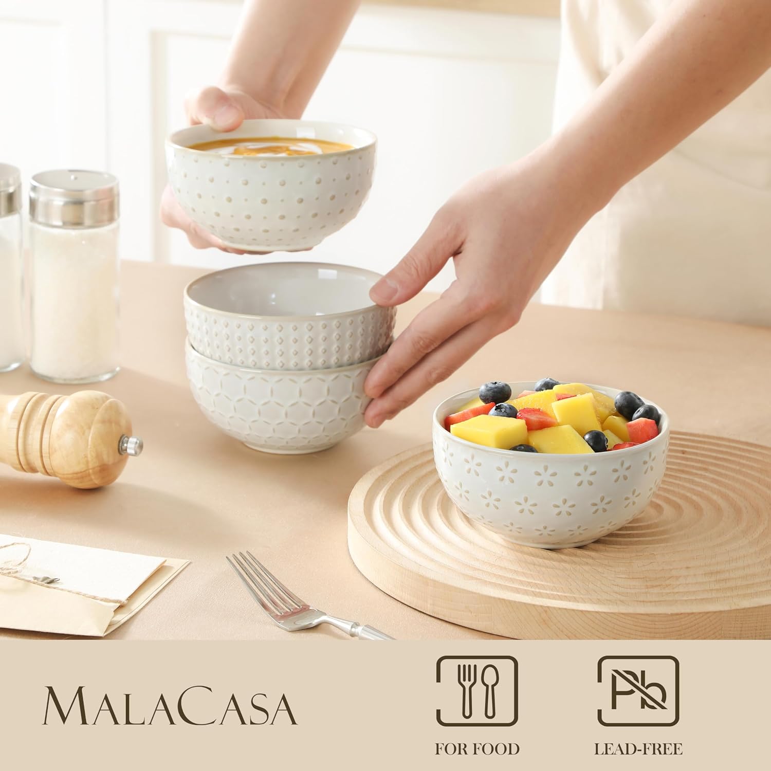 • 【Quality and Healthy Ceramic】MALACASA small bowl set insists on top quality porcelain, certified safe for everyday use, strong and durable while free of toxic chemicals. High temperature firing (2300 degrees Fahrenheit) ensures durability and a non-porous glaze that resists stains and odors. Perfect for families who are conscious of healthy eating