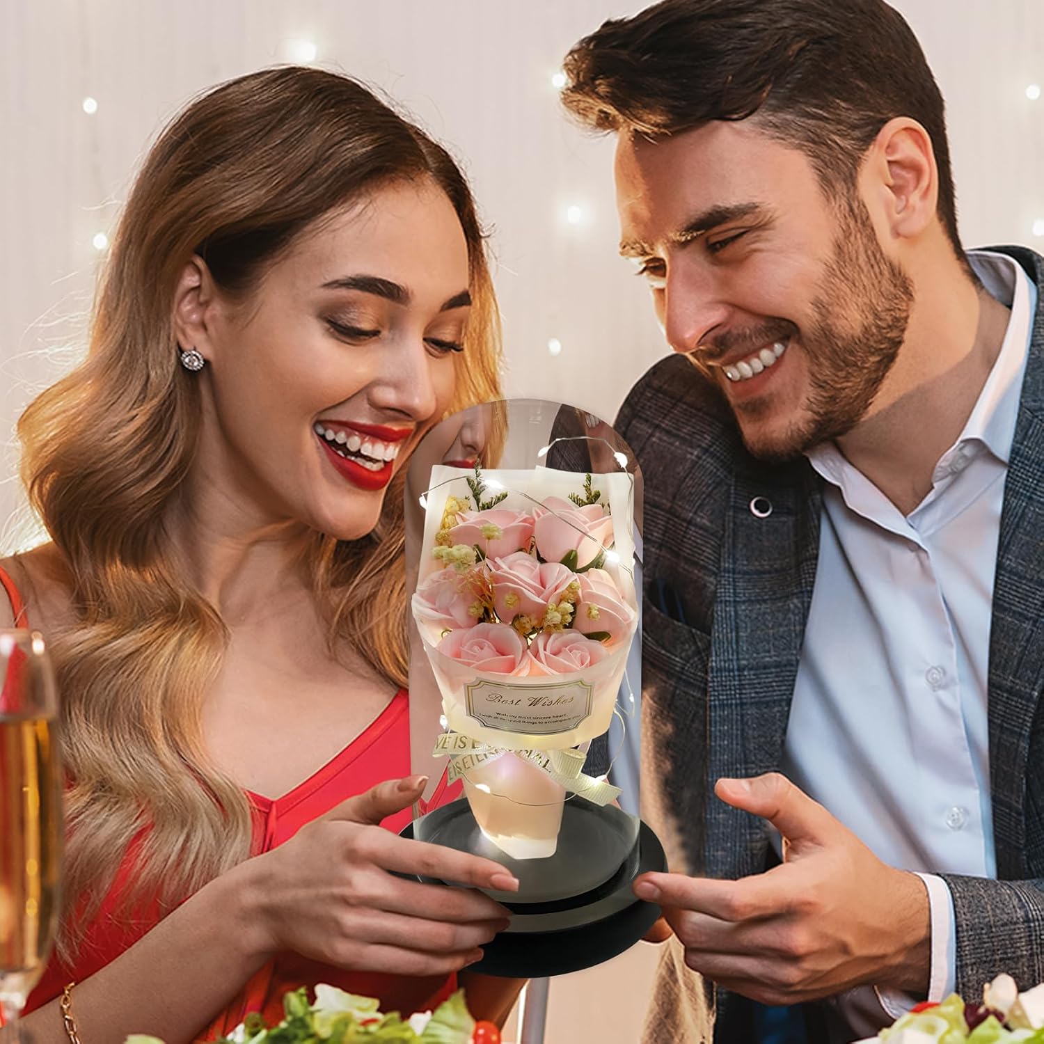 • 【Valentines Flowers Gifts Come With Happiness】:Women Gifts from daughter son. Valentines gifts for her. The twinkle lights wrapped around the flower rose bouquet in glass dome. Everyone will fascinate it when it light at romantic nigth. Get it on the special day, get happiness and sweet time.