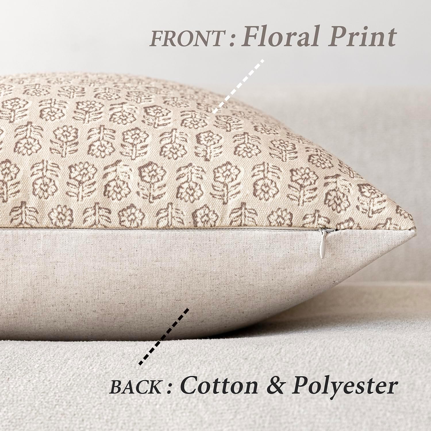 Foindtower Set of 2 Decorative Neutral Floral Print Throw Pillow Covers Vintage Accent Farmhouse Cushion Covers Boho Home Decor for Sofa Couch Chair Bedroom Living Room Outdoor,24×24 Inch,Ivory Beige