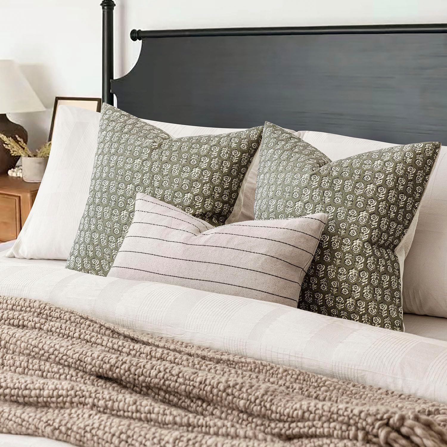 Foindtower Set of 2 Decorative Vintage Floral Print Throw Pillow Covers Neutral Modern Farmhouse Cushion Covers Boho Home Decor for Sofa Couch Chair Bedroom Living Room Outdoor,24×24 Inch,Sage Green