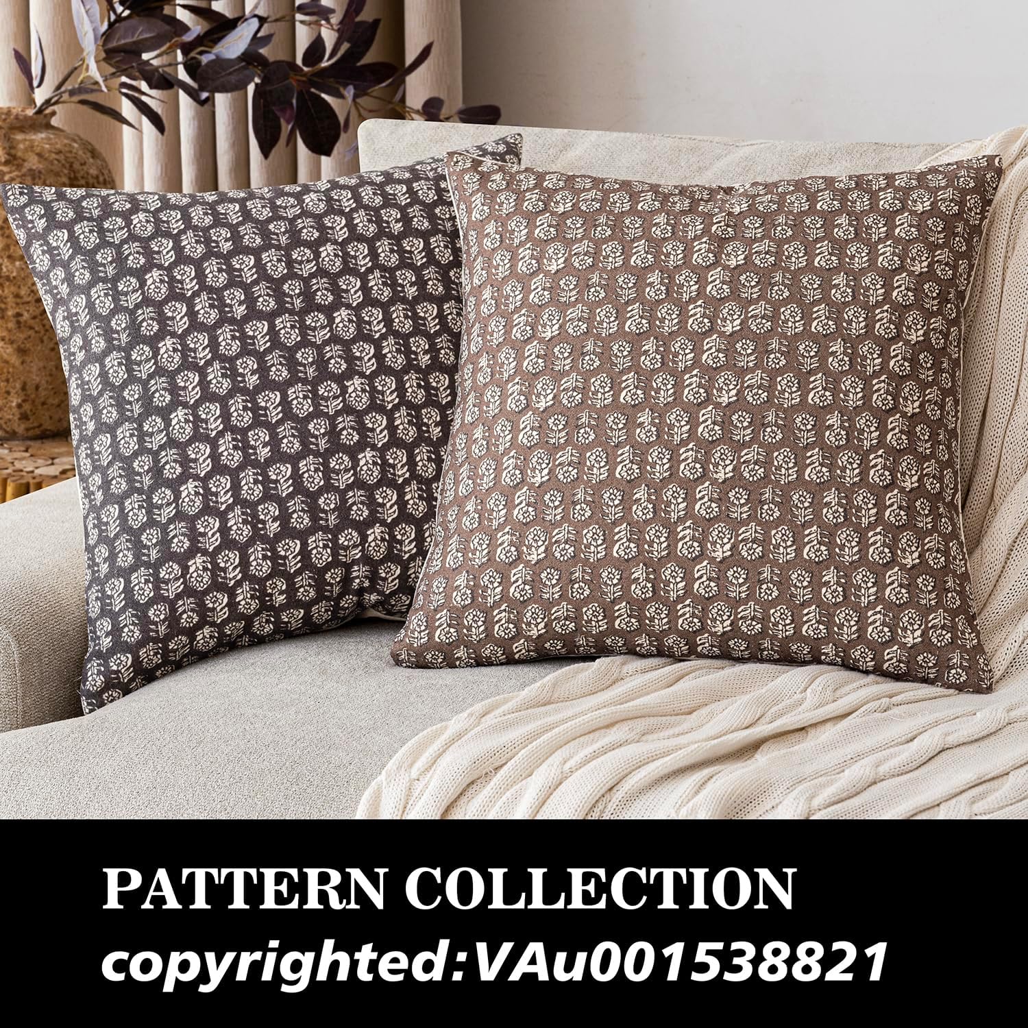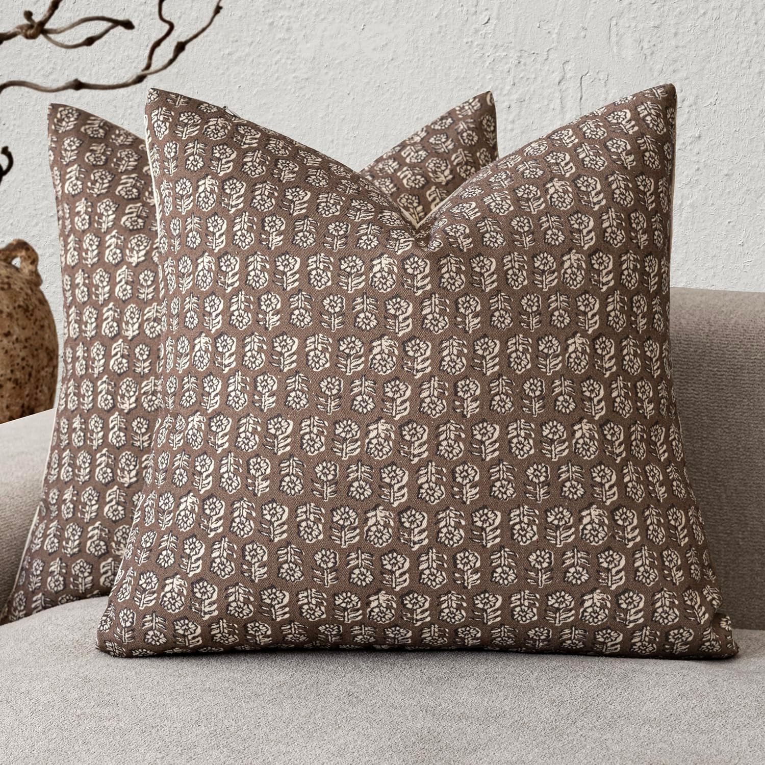 Foindtower Set of 2 Decorative Neutral Floral Print Throw Pillow Covers Vintage Accent Farmhouse Cushion Covers Boho Home Decor for Sofa Couch Chair Bedroom Living Room Outdoor,24×24 Inch,Brown