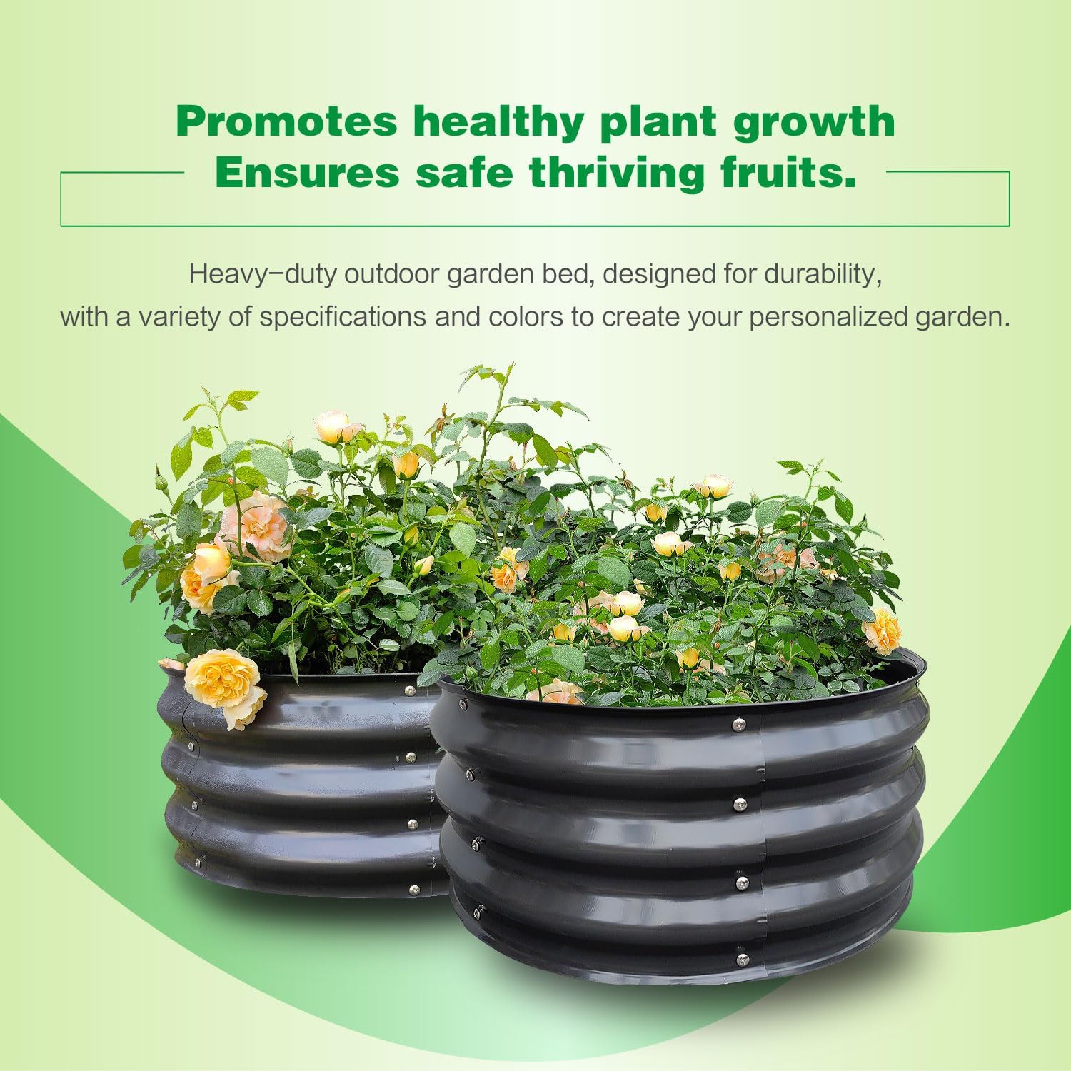 GARDMAX 2 Pack 2x2x1FT Galvanized Round Raised Garden Bed Kit, Metal Planter Boxes Outdoor with Easy Assembly, Large Garden Bed for Vegetables, Fruits, Flower, Herbs Dark Gray