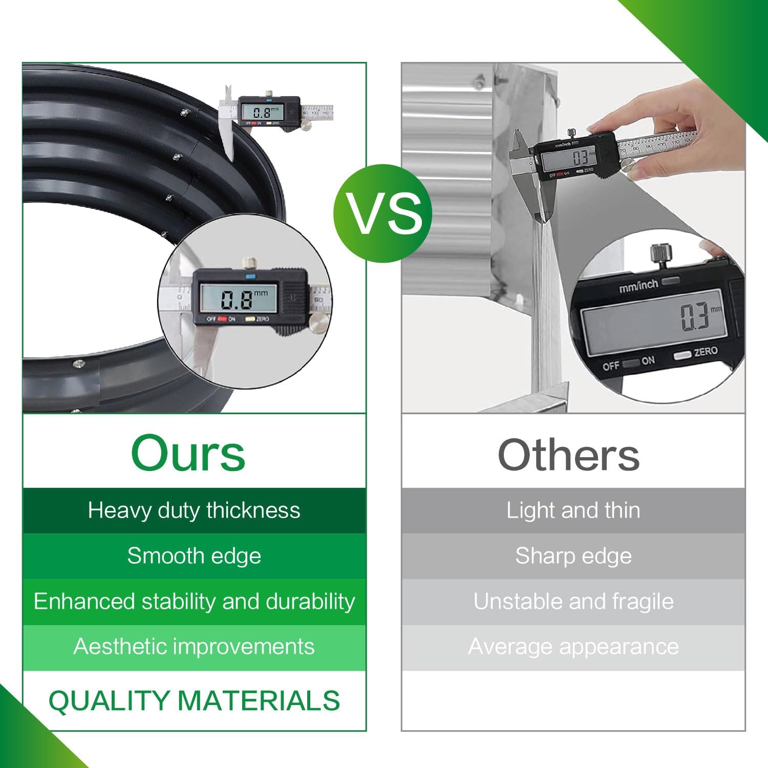 • EASY TO ASSEMBLE: Set up your garden bed, in just minutes and easy to put it together, it can be reused for many years. GARDMAX raised garden beds feature an round design with no sharp corners to cover the edges. And the top edge of the metal raised garden bed comes with a black rubber sealing edge for reinforcement as well as to prevent injury, and it can be cutted to the length you required. Get started on your garden right away and enjoy fresh, healthy produce in no time