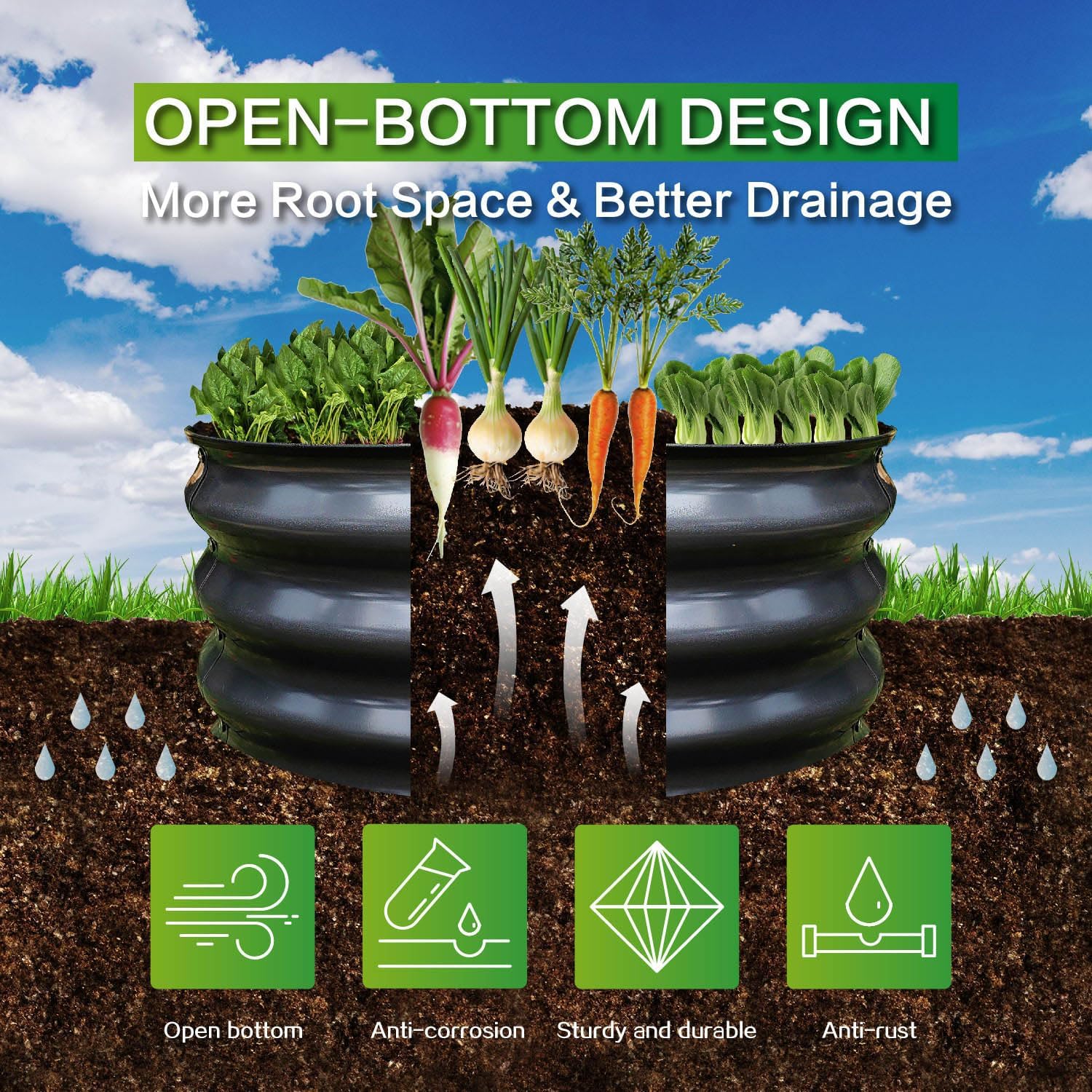 • OPEN BOTTOM DESIGN: GARDMAX galvanized planter raised beds are designed with an open bottom, which is good for drainage to protect plants, plant roots won't be sick from excessive water. It also keep weeds away from soil and keep out chicken, small pets like puppies, rabbits to protect your plants