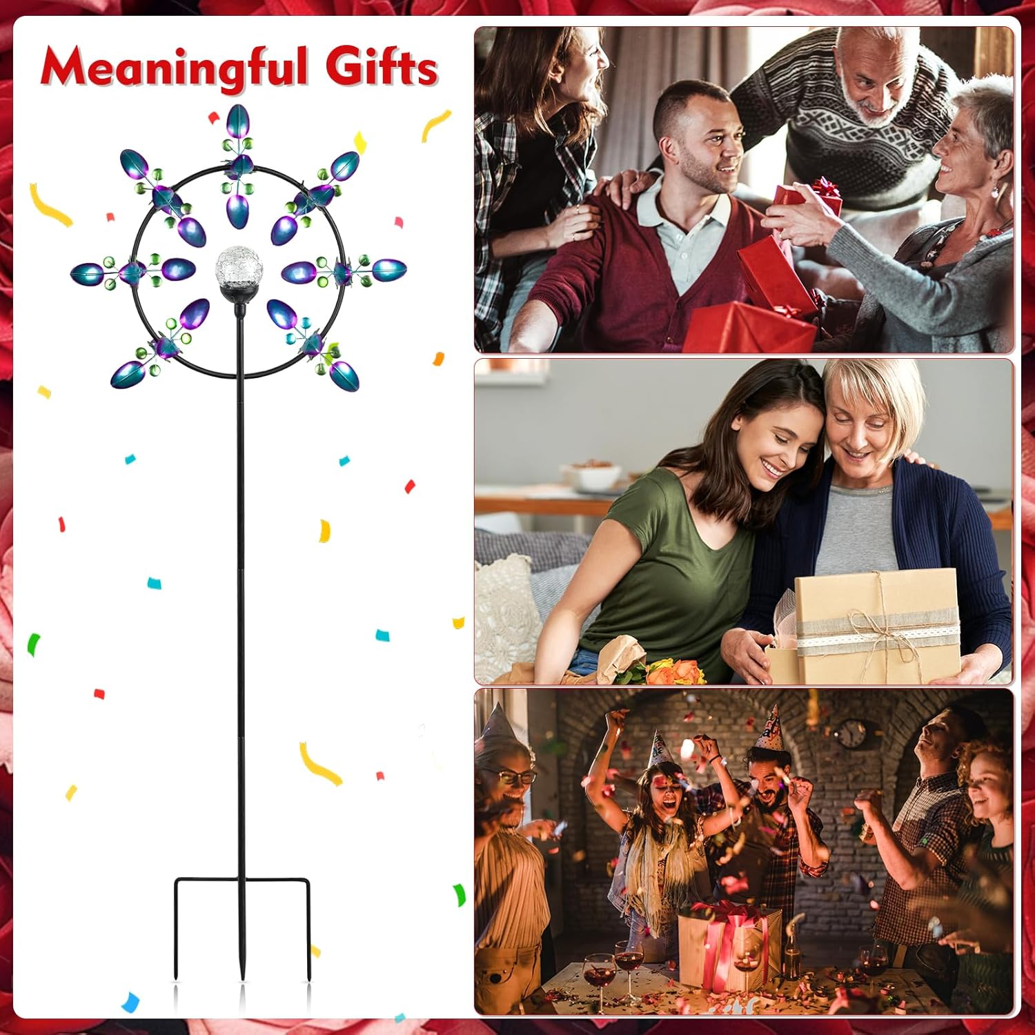Large Solar Wind Spinner Outdoor, Metal Wind Sculpture Kinetic for Patio Garden Yard Decor, Gift for Family or Friends