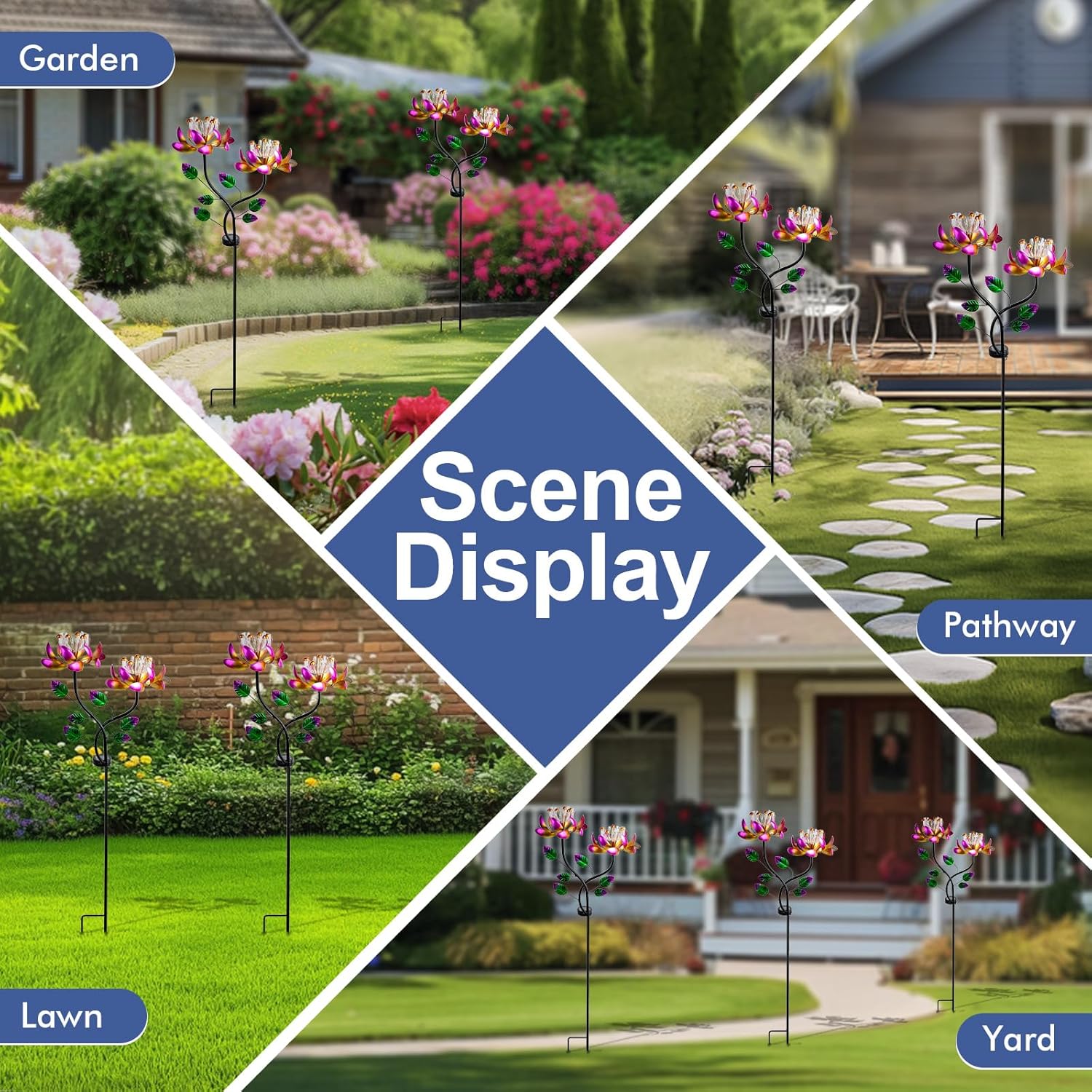 • STANDING STABLE: The metal stake of the solar weathervane has two sturdy metal spikes to ensure that the weathervane will stand up even in strong winds, allowing you to enjoy the graceful spinning of the flowers. The blades are also coated with a durable rust-resistant paint to withstand all weather conditions.