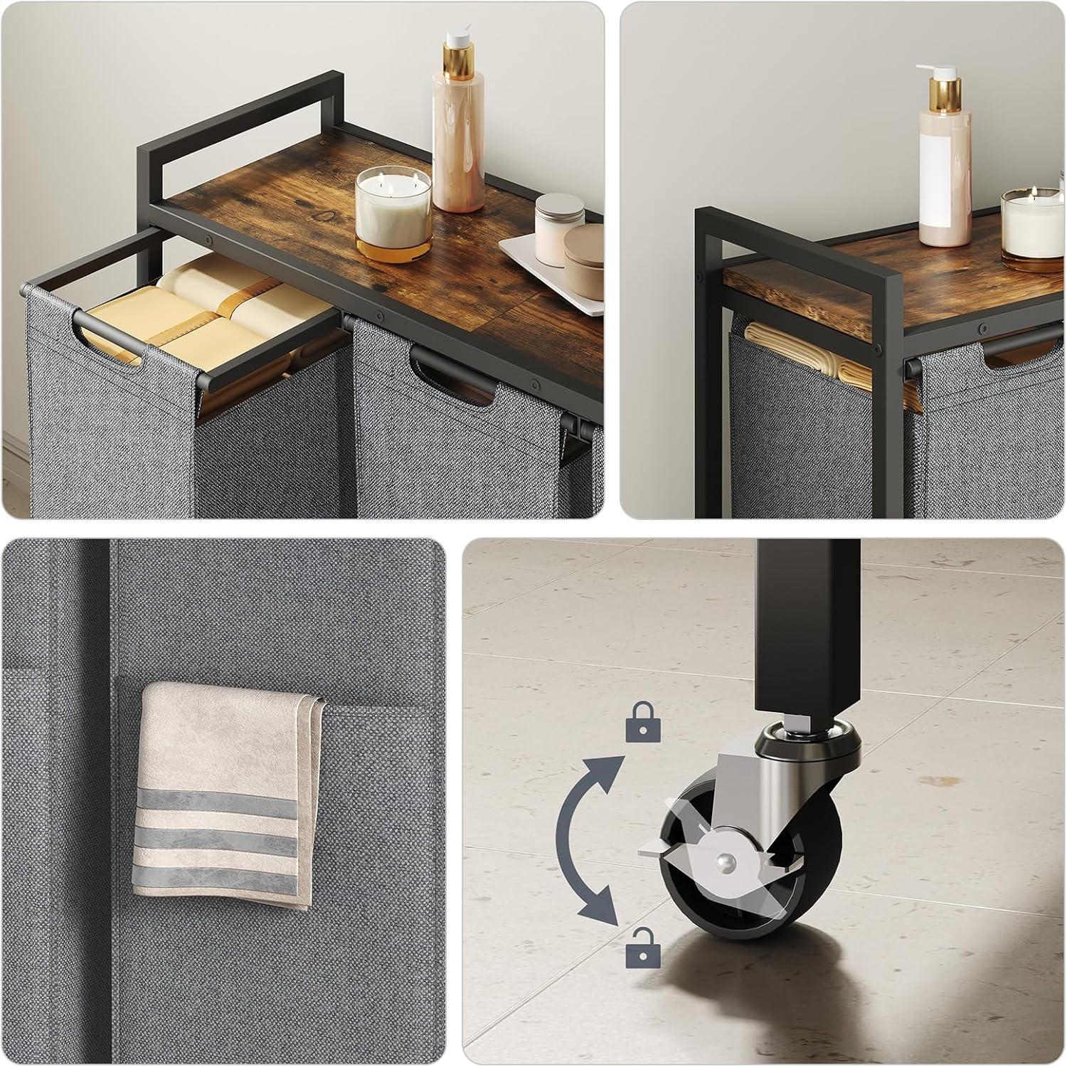 • Efficient Divided Storage: With 3 spacious compartments, each holding up to 11.5 gallons (43.4L), this laundry sorter boasts a total capacity of 34.5 gallons (130L), so you can easily organize your laundry by type and separate the lights and darks