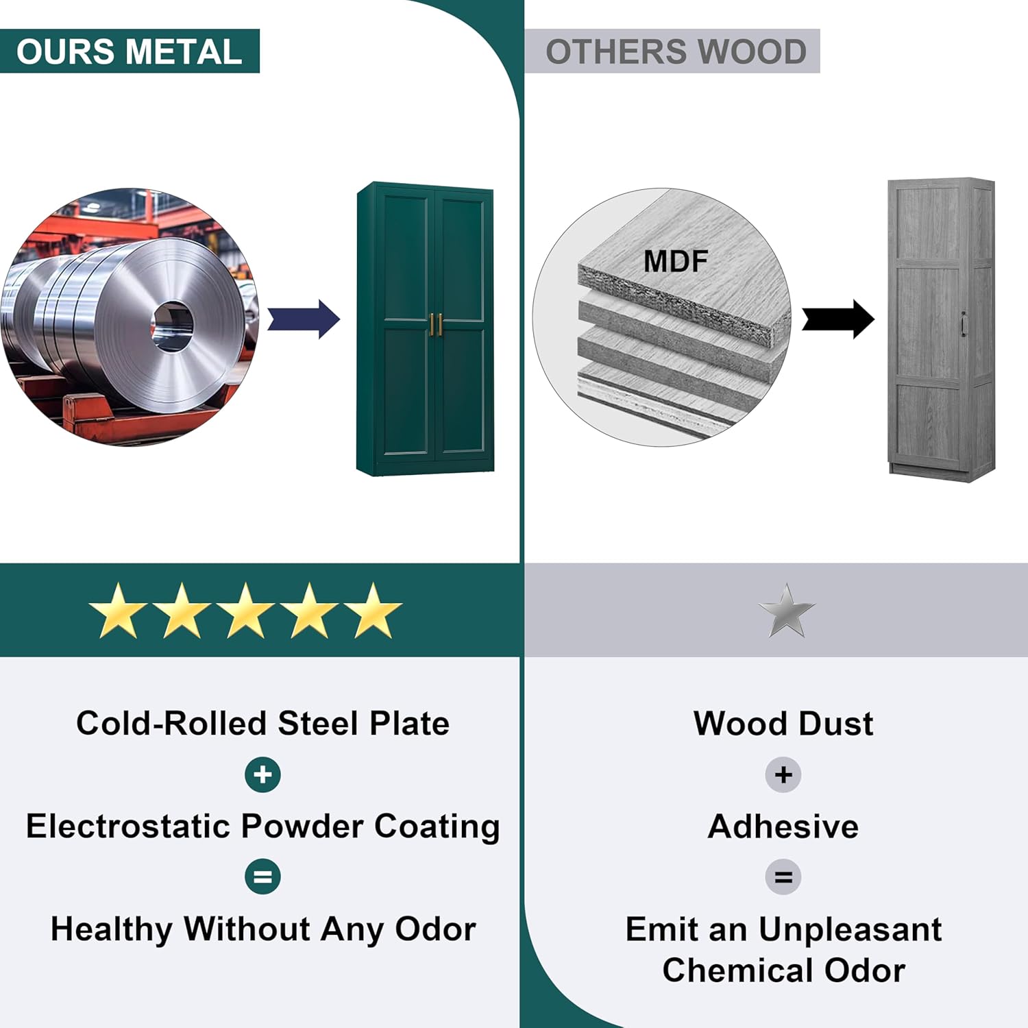 71" Storage Cabinet, Metal Pantry Cabinet, Kitchen Pantry Storage Cabinets with Doors and 4 Shelves, Cabinets for Laundry Room, Living Room, Dinning Room, Assembly Required, Green
