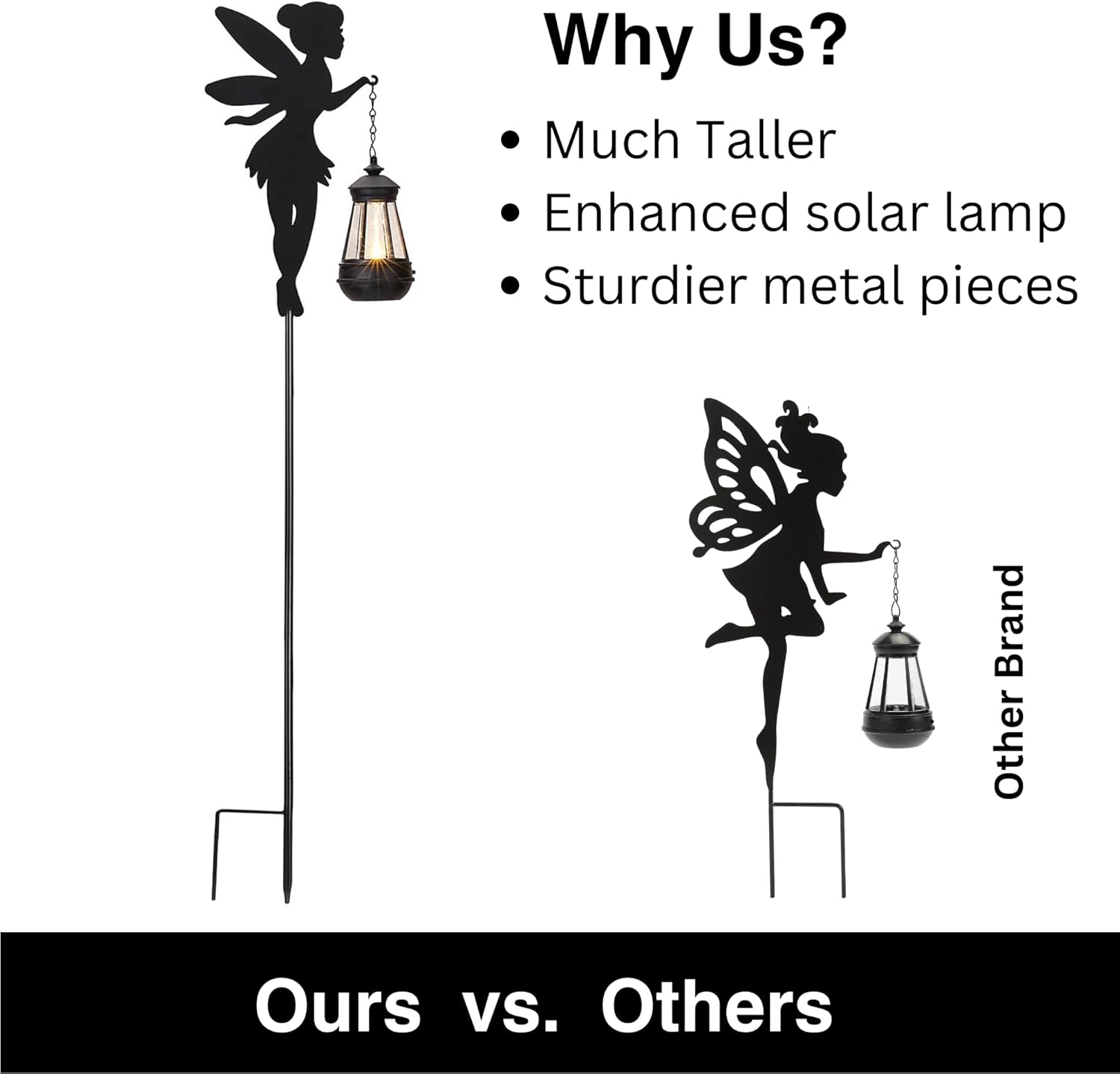 • 【 Tall Metal Solar Stakes 】Differing from other Fairy Statutes Solar lights for decoration, these angel figurines lights offer much taller height as 39 inch. The fairy garden kit comprises two straight poles with screws on both ends and one pole with a stake.