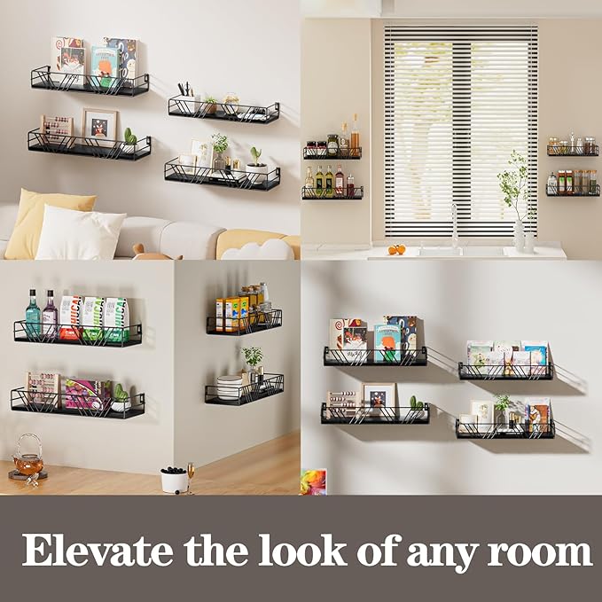 • Space-Saving Design: This wall shelves Maximize your wall space while freeing up countertops in bathrooms, bedrooms, guest baths, kitchens, and living rooms. The sleek design blends seamlessly with modern, minimalist, or vintage décor, keeping your space organized and stylish