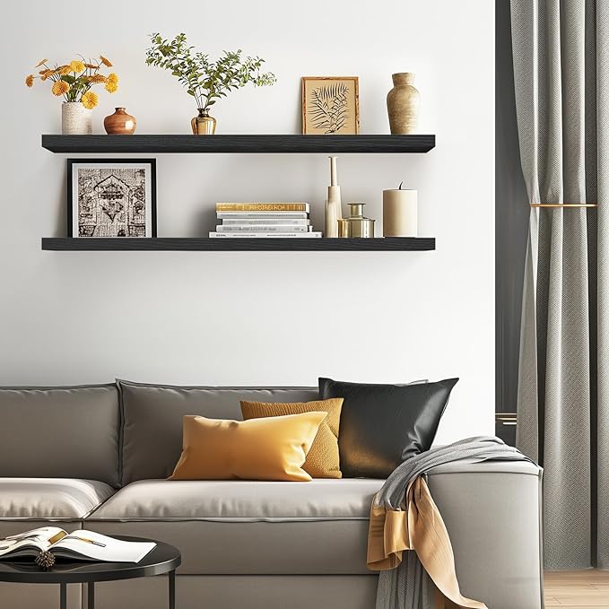 • ๐’๐ฉ๐š๐œ๐ข๐จ๐ฎ๐ฌ & ๐…๐ฎ๐ง๐œ๐ญ๐ข๐จ๐ง๐š๐ฅ ๐’๐ข๐ณ๐ž โ€“ At ๐Ÿ’๐Ÿ– ๐ข๐ง๐œ๐ก๐ž๐ฌ ๐ฅ๐จ๐ง๐ , these shelves ๐ฉ๐ซ๐จ๐ฏ๐ข๐๐ž ๐š๐ฆ๐ฉ๐ฅ๐ž ๐ฌ๐ฉ๐š๐œ๐ž ๐Ÿ๐จ๐ซ ๐จ๐ซ๐ ๐š๐ง๐ข๐ณ๐ข๐ง๐  ๐จ๐ซ ๐ฌ๐ก๐จ๐ฐ๐œ๐š๐ฌ๐ข๐ง๐  ๐ข๐ญ๐ž๐ฆ๐ฌ ๐ฐ๐ข๐ญ๐ก๐จ๐ฎ๐ญ ๐œ๐ซ๐จ๐ฐ๐๐ข๐ง๐  ๐ฒ๐จ๐ฎ๐ซ ๐ฐ๐š๐ฅ๐ฅ. Perfect for displaying essentials or decorative accents