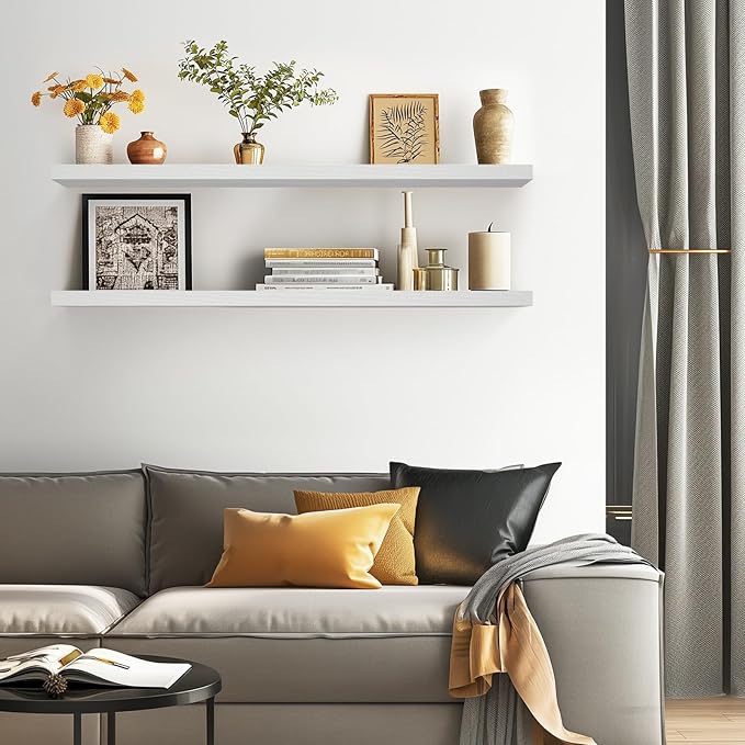 • ๐’๐ฉ๐š๐œ๐ข๐จ๐ฎ๐ฌ & ๐…๐ฎ๐ง๐œ๐ญ๐ข๐จ๐ง๐š๐ฅ ๐’๐ข๐ณ๐ž โ€“ At ๐Ÿ’๐Ÿ– ๐ข๐ง๐œ๐ก๐ž๐ฌ ๐ฅ๐จ๐ง๐ , these shelves ๐ฉ๐ซ๐จ๐ฏ๐ข๐๐ž ๐š๐ฆ๐ฉ๐ฅ๐ž ๐ฌ๐ฉ๐š๐œ๐ž ๐Ÿ๐จ๐ซ ๐จ๐ซ๐ ๐š๐ง๐ข๐ณ๐ข๐ง๐  ๐จ๐ซ ๐ฌ๐ก๐จ๐ฐ๐œ๐š๐ฌ๐ข๐ง๐  ๐ข๐ญ๐ž๐ฆ๐ฌ ๐ฐ๐ข๐ญ๐ก๐จ๐ฎ๐ญ ๐œ๐ซ๐จ๐ฐ๐๐ข๐ง๐  ๐ฒ๐จ๐ฎ๐ซ ๐ฐ๐š๐ฅ๐ฅ. Perfect for displaying essentials or decorative accents