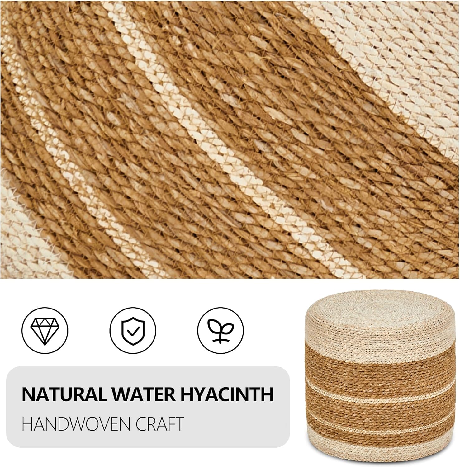 • 100% Handmade Cover: Pouf Ottoman is made of sustainable, and durable natural seaweed & corn husk braid.High-end sewing technology makes natural materials more tight and not easy to open