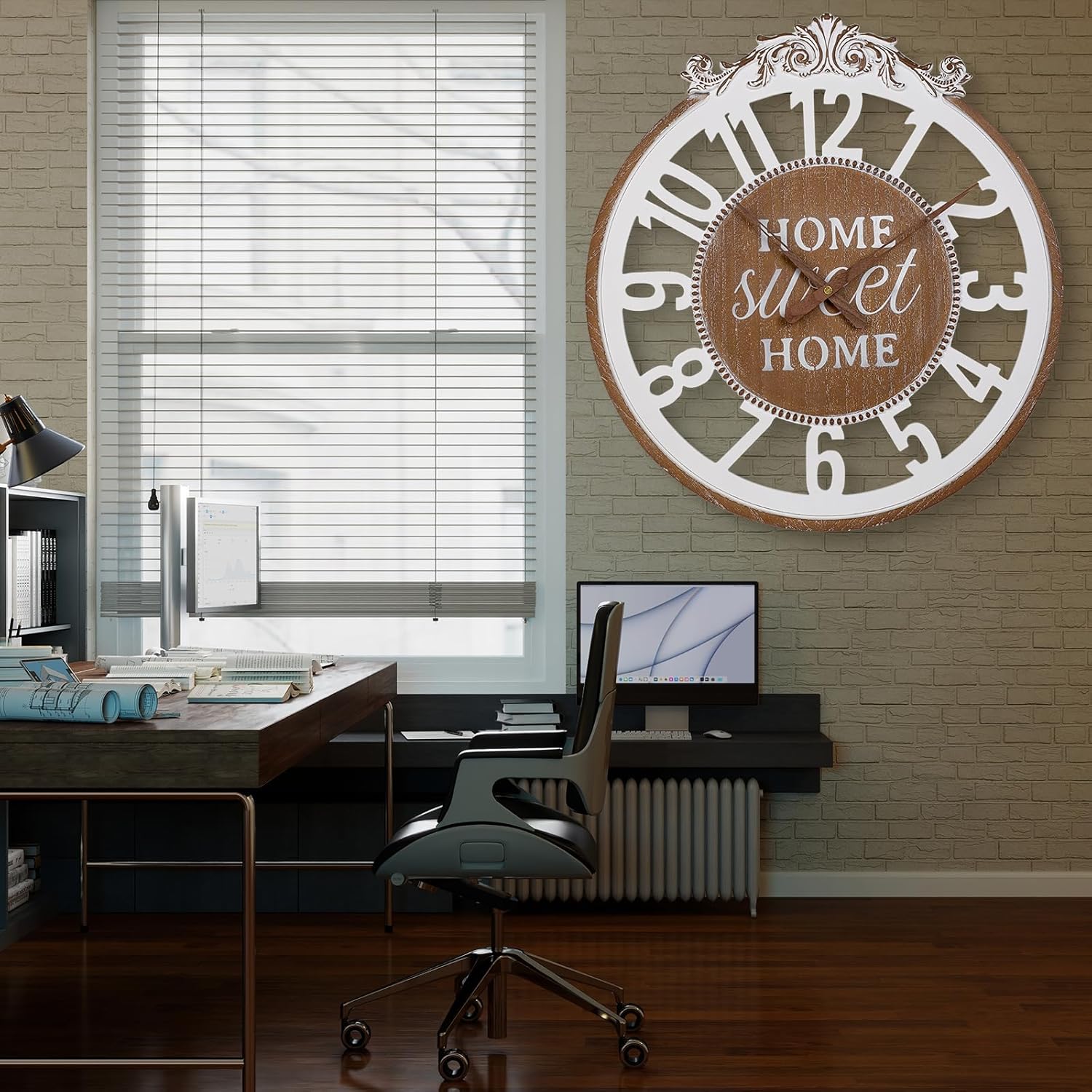 • 【Rustic Farmhouse Style】 Bring vintage character to your space with this round 24-inch wooden wall clock, designed with a distressed wood finish that complements farmhouse, cottage, or rustic-themed décor.