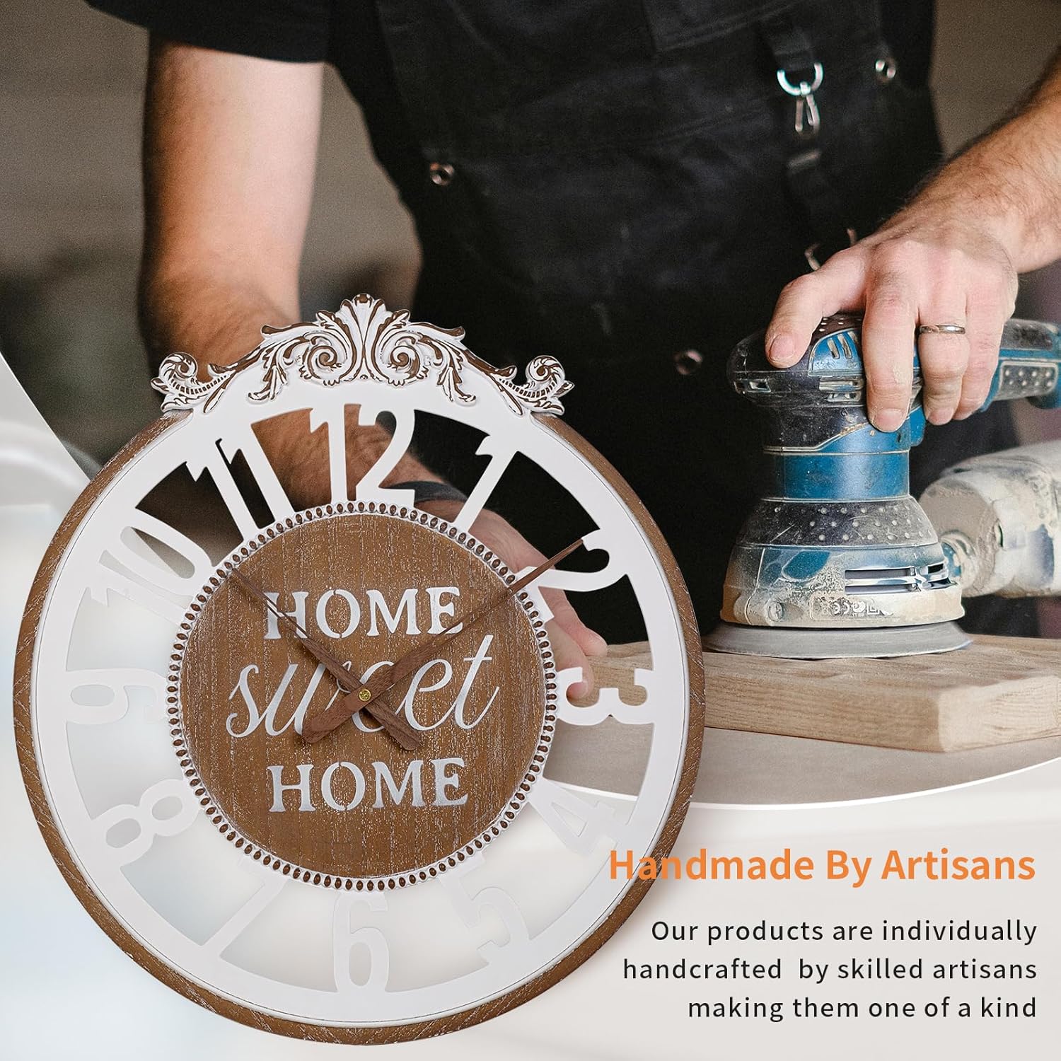 • 【Wall Clock Size 24 Inches】 Crafted from high-quality wood with a hand-carved face, this 24-inch rustic wall clock is both sturdy and elegant. It adds a natural touch and decorative charm to living rooms, bedrooms, kitchens, and more.