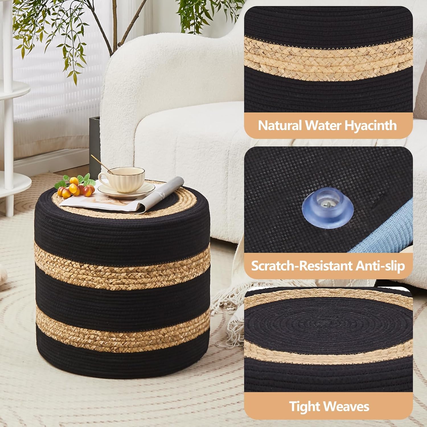 • 100% Handmade Cover: Pouf Ottoman is made of sustainable, and durable natural seaweed & corn husk braid.High-end sewing technology makes natural materials more tight and not easy to open