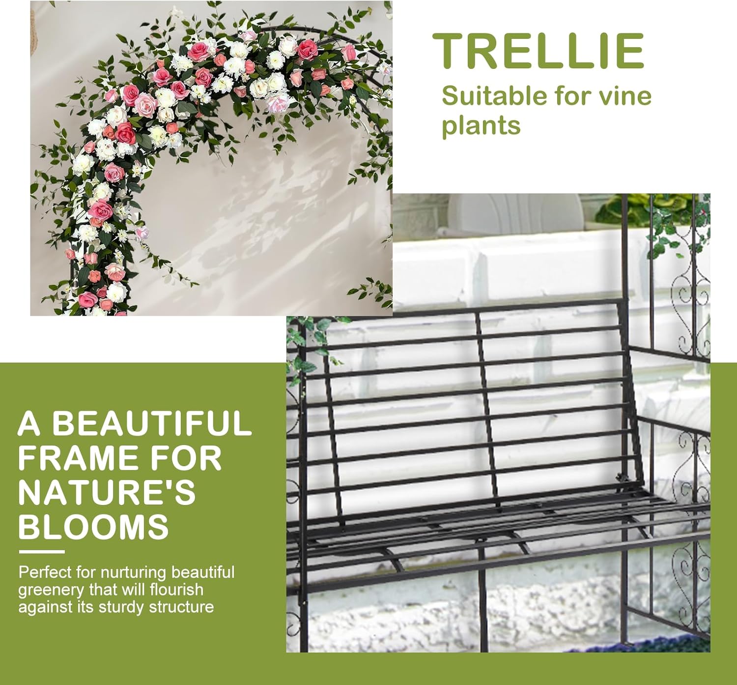 • 【Comfortable bench】According to ergonomics and test results, we designed the backrest of the bench to be inclined and the seat to be curved. Your body can lean against it with a relaxed feel. The heavy-duty iron frame structure has enough support to prevent the climbing trellis from tipping over. And there is also a support rod at the bottom of the chair to support the seat. You can use it with confidence