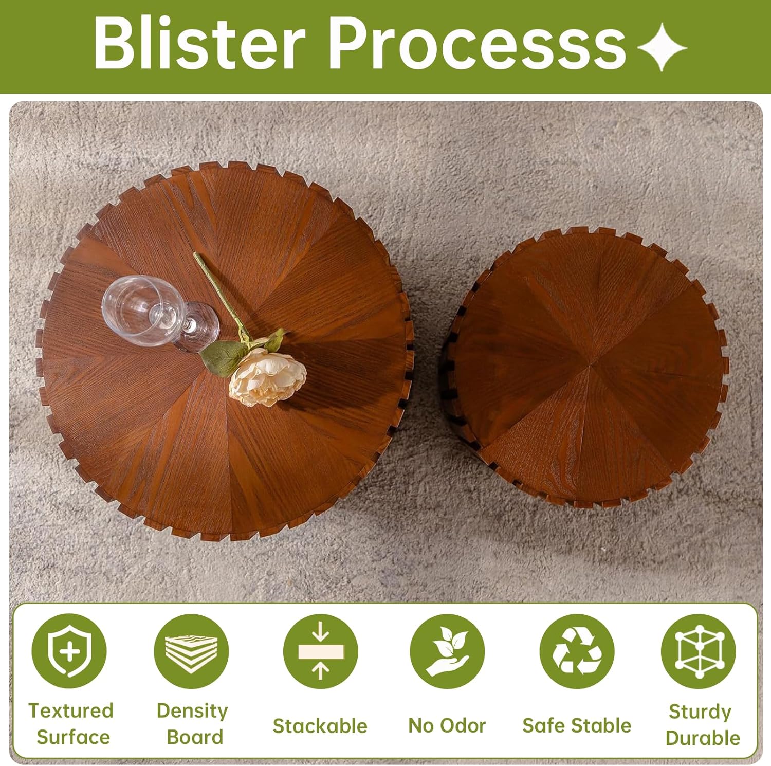 • [Built to Last, Designed for Safety] Made from High quality wood for lasting durability, this round coffee table nesting tables includes anti-slip foot pads to protect your floors and rounded edges for a safer, bump-free experience—perfect for homes with kids or pets!