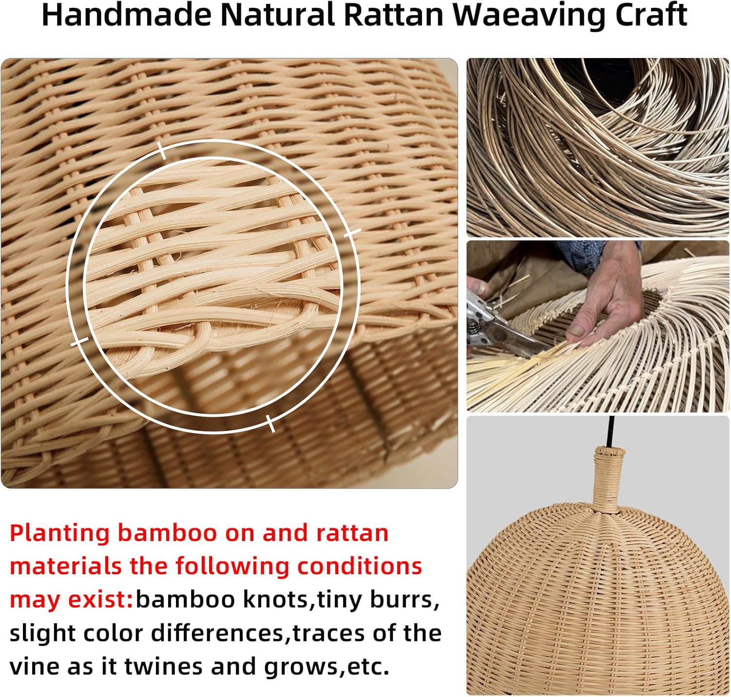 • 【Hand-Woven Rattan Chandelier Natural Material】Rattan craft is selected from the trees we grow , which undergoes various processing procedures. This Rattan craft is heat resistant, fade resistant, safe and healthy