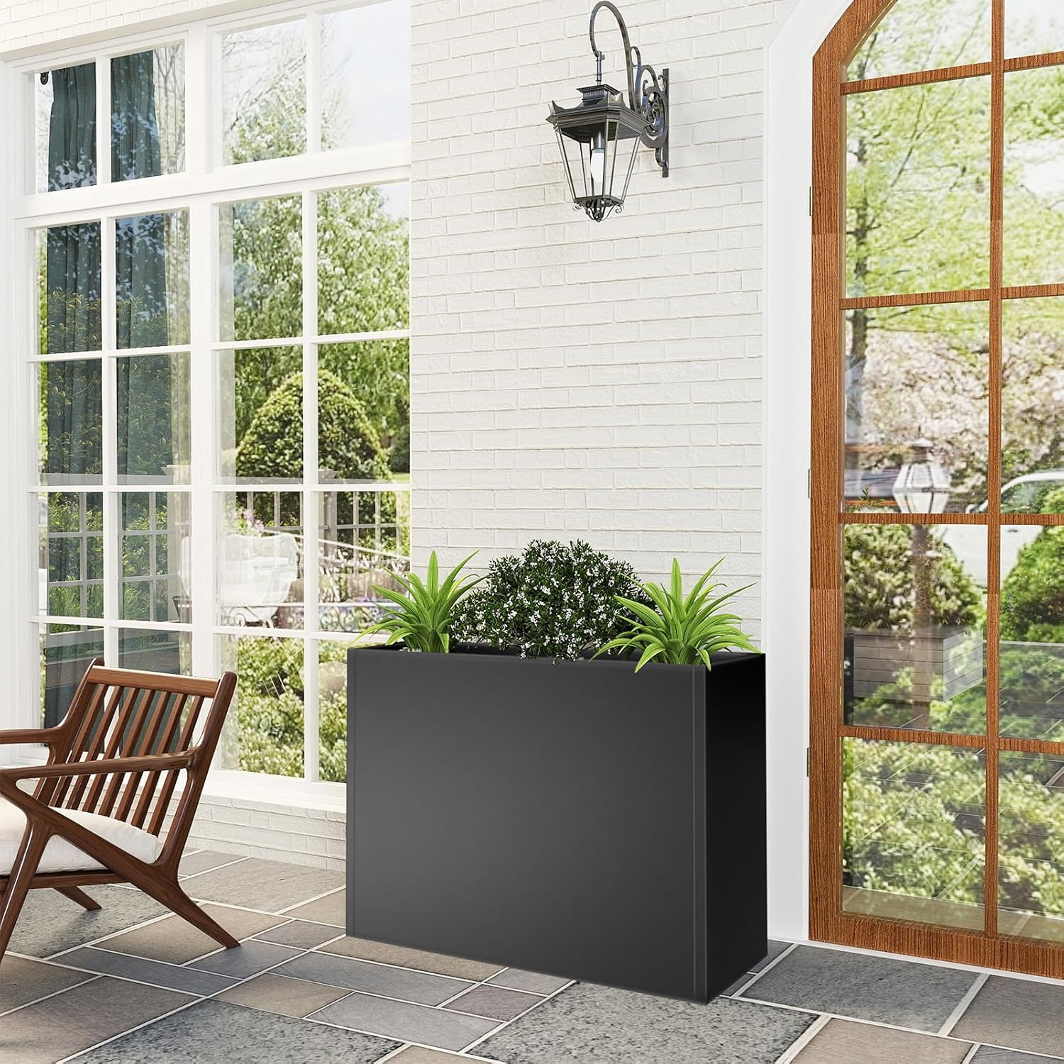 • 【Durable Metal Construction】The tall rectangular planter box is 30"L x 12"W x 24"H, made from high-grade rust-resistant metal that is weather resistant and UV protected for indoor or outdoor use. Its robust Metal construction guarantees structural integrity and visual appeal for years to come.