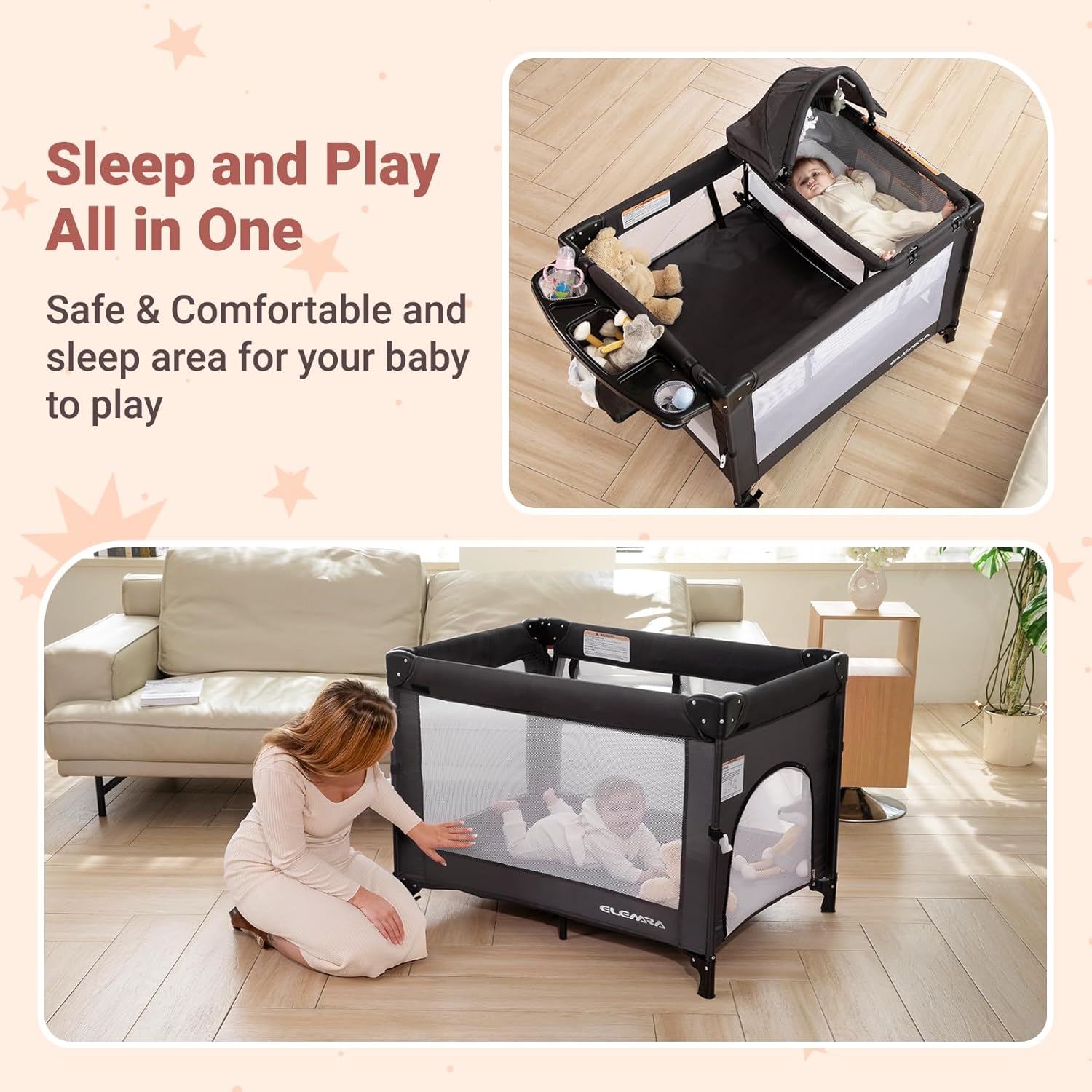 • 👶【5-in-1 Multifunctional Design】This 5-in-1 crib Combines bassinet, playpen, diaper changing table,portable travel bassinet, and play center and side zipper to meet the whole transformation grow up process of 0-3 years old babies