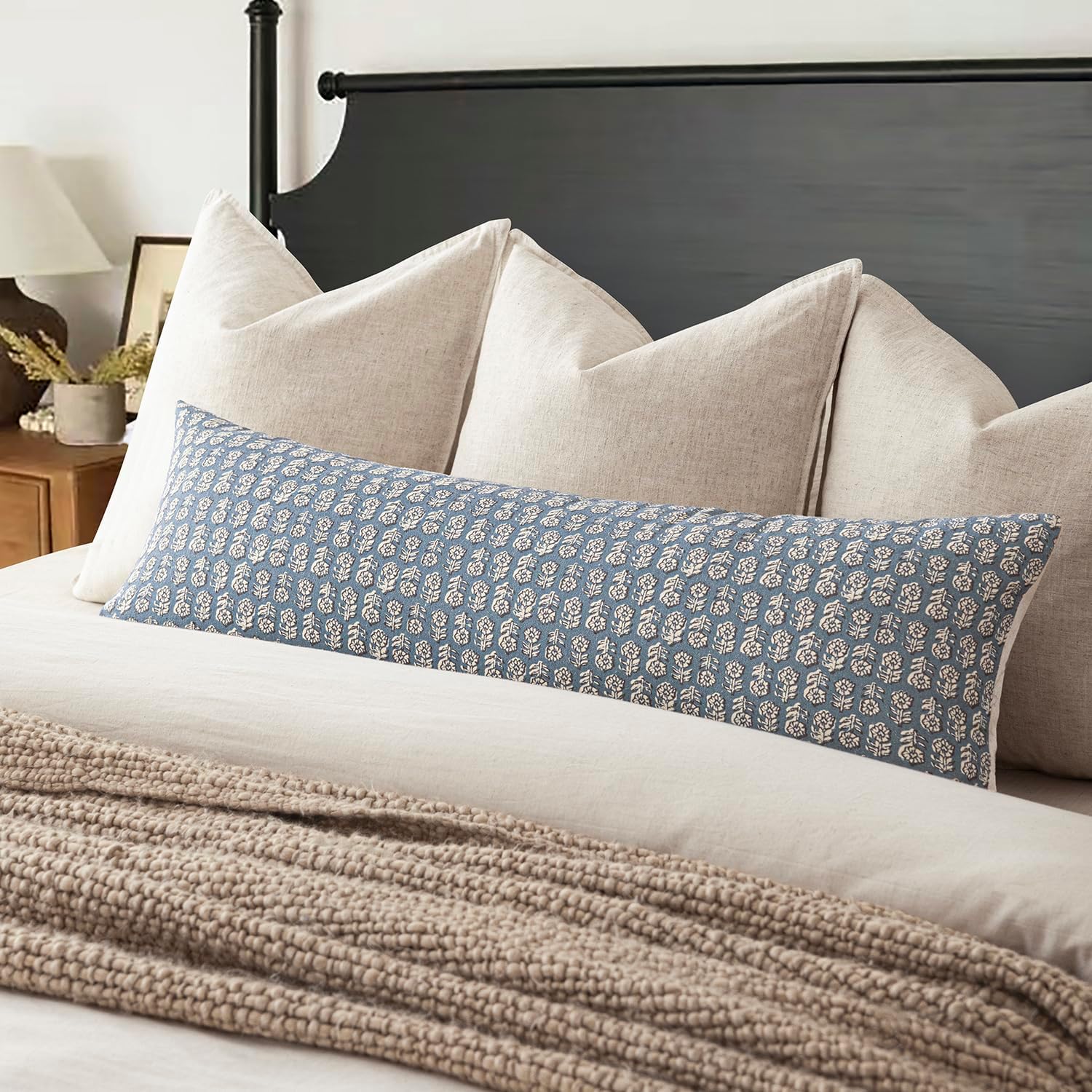 Foindtower Set of 2 Decorative Neutral Body Lumbar Throw Pillow Covers Vintage Accent Farmhouse Cushion Covers Floral Home Decor for Sofa Couch Chair Bedroom Living Room Outdoor,14×36 Inch,Dusty Blue