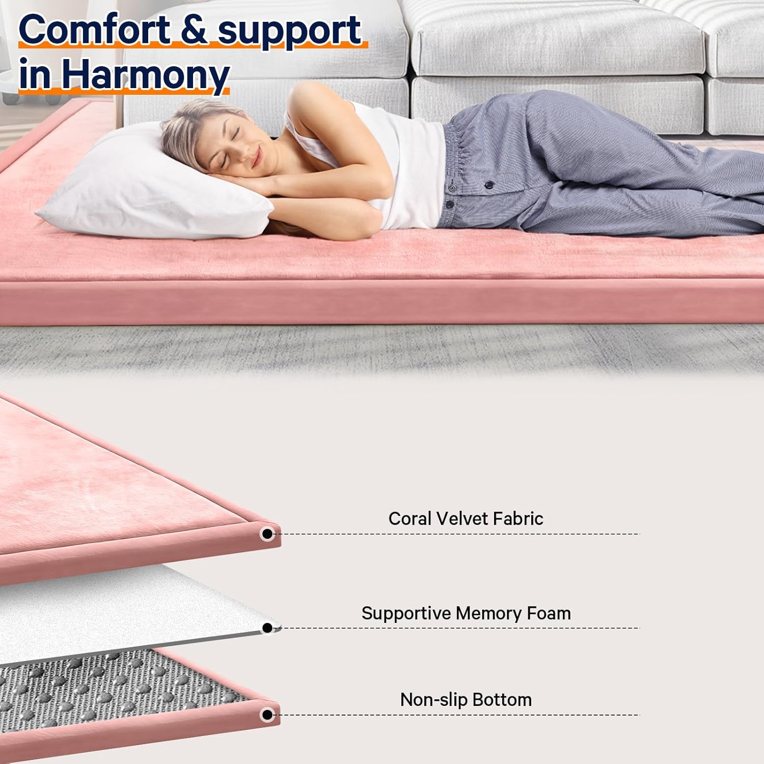 • 🐣SAFE & COMFY: Our baby play mat is made of 100% coral velvet material and filled with high-quality 3.5cm thick memory foam,eco-friendly and durable, providing a safe and comfortable play area for your babies, without worrying about them hurting themselves on hard floors.The surface of this tummy time mat is velvet cover, which is not only soft and comfortable to touch, but also has a good cushioning effect.