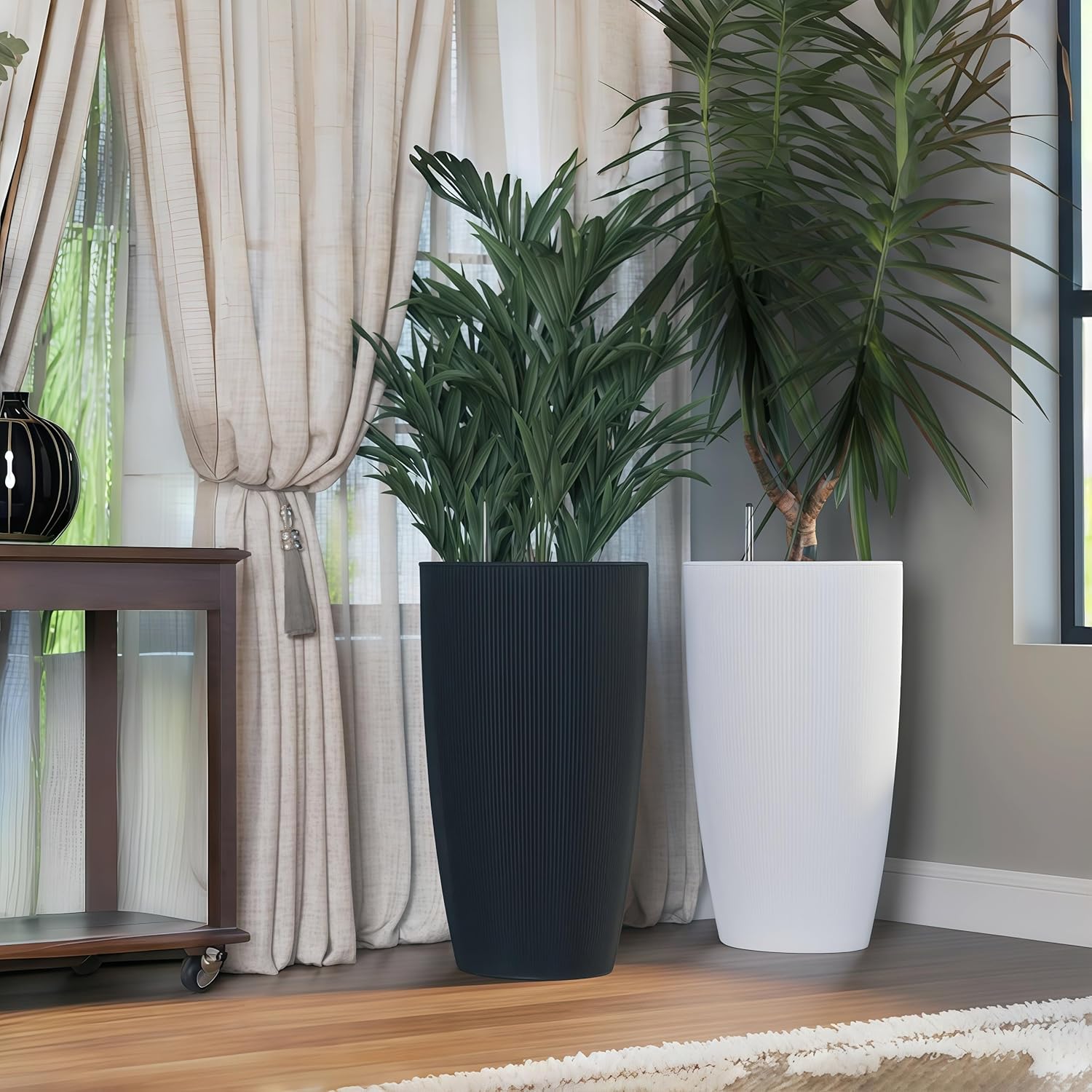 2Pack 22" High Modern Plant Pots Planter-Self-Watering Indoor/Outdoor Planting with Drain Holes, Water Level Monitor, Inner Bucket for Front Porch Patio, Black Rattan Conical