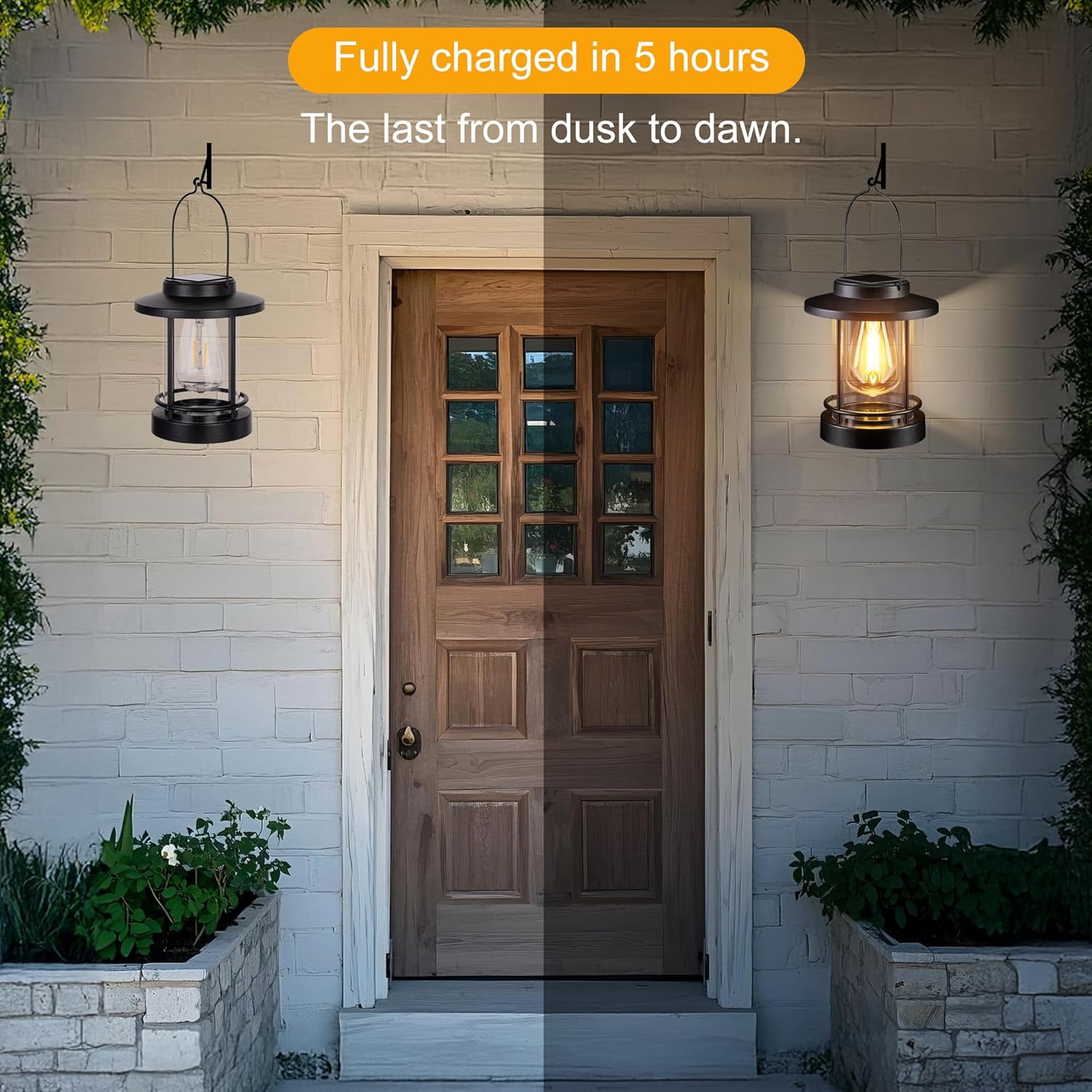 Hanging Solar Lanterns Outdoor Waterproof – 2 Pack Decorative Solar Lights for Outside, Patio, Porch, Yard, Balcony, Table – Hanging Outdoor Lantern Garden Gifts for Women,Mom