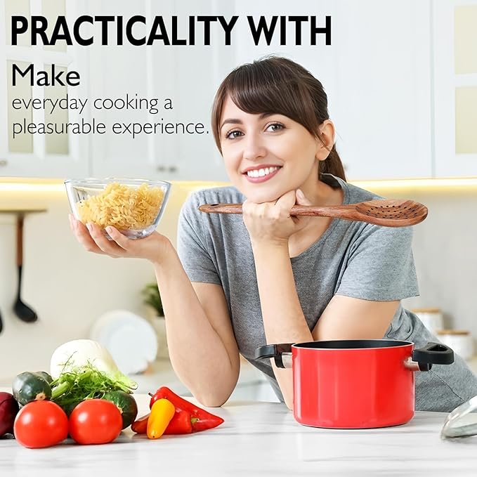 • 【Natural Wood】Wooden kitchen cookware set, handmade 100% natural teak, environmentally friendly and harmless. It is one of the most durable woods, stronger and more durable than silicone spoons and bamboo spoons (Natural wood may have color differences, which is normal.