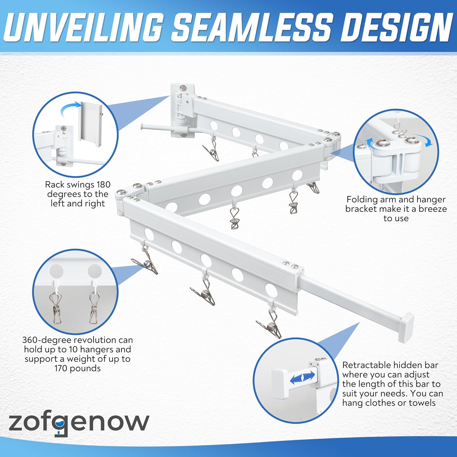 • Sturdy Clothes Drying Rack Holds Up To 170 LBS Perfect For Laundry Room Balcony Bathroom Bedroom Drying Rack Clothing Capacity Tested To 170 LBS For Heavy Loads 360 Rotating Hooks Adjust To Sun And Breeze Drying Rack Provides Daily Convenience