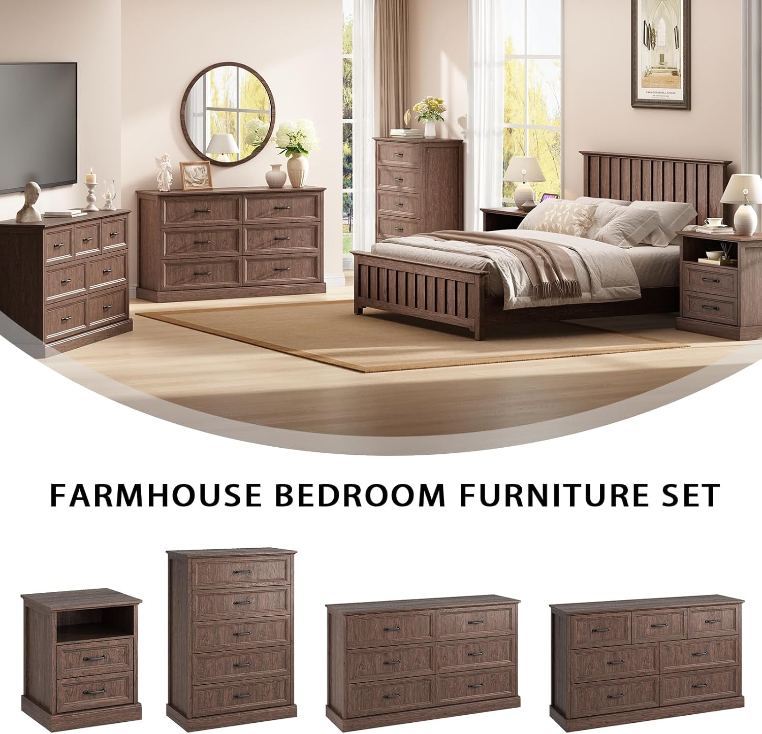 • Versatile Usage: This brown dresser offers various placement options for your room. Beyond being a storage cabinet in the bedroom, it serves as a entryway dresser to put daily items and overflow, or even as a TV stand(suit for 60" TV) in the living room for odds and ends. The classic farmhouse dressers are suitable for most spaces and styles of homes, can be integrated into different scenes, such as bedroom, living room, closets, hallway, and entryway etc. The farmhouse dresser with drawers can fit them perfectly.