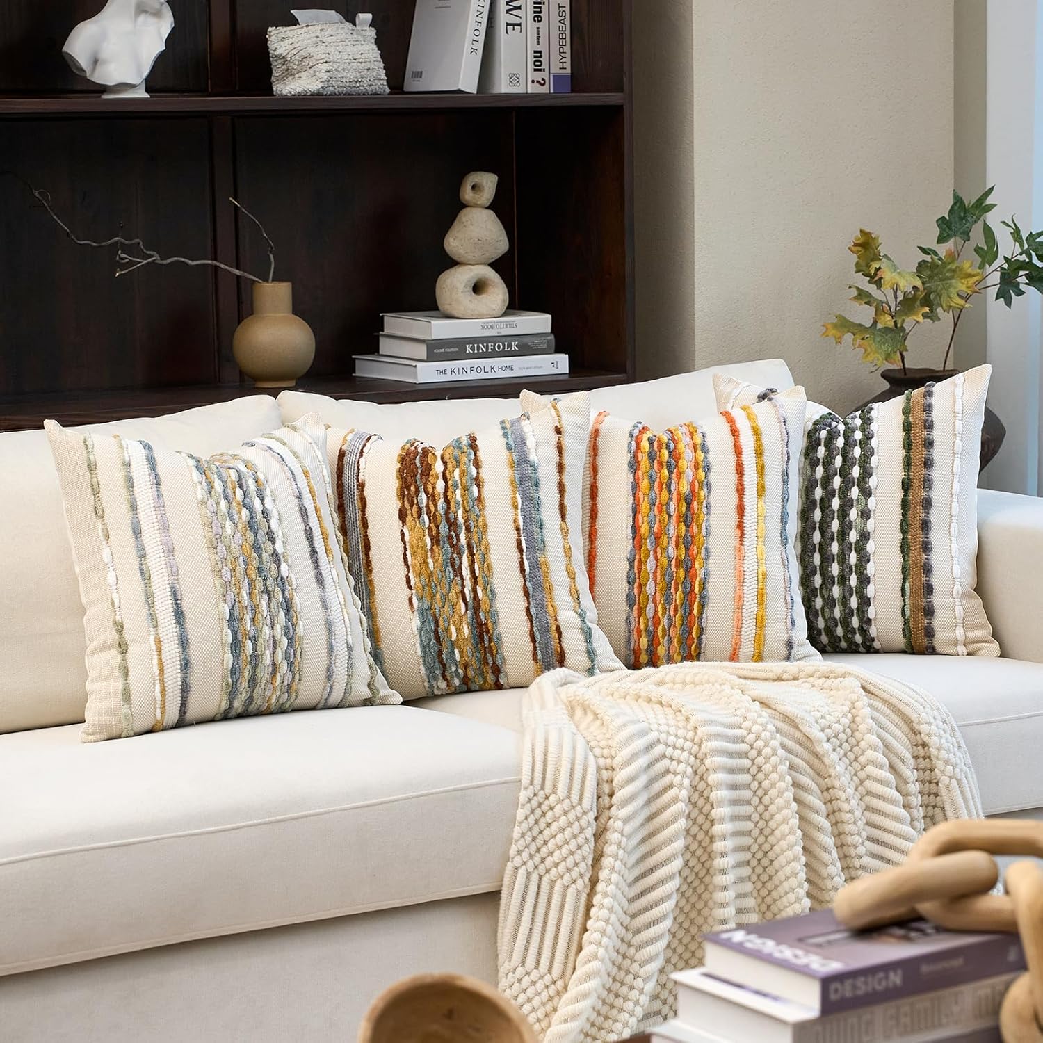 • 【Design】The unique striped pattern of pillow cover is designed by Aeckself Brand Designer. The Bohemian style is full of freedom, romance and unrestraint, which can add a unique artistic atmosphere and personal charm to the home. The striped design is simple and full of rhythm, with strong visual impact and can become a highlight in the space.