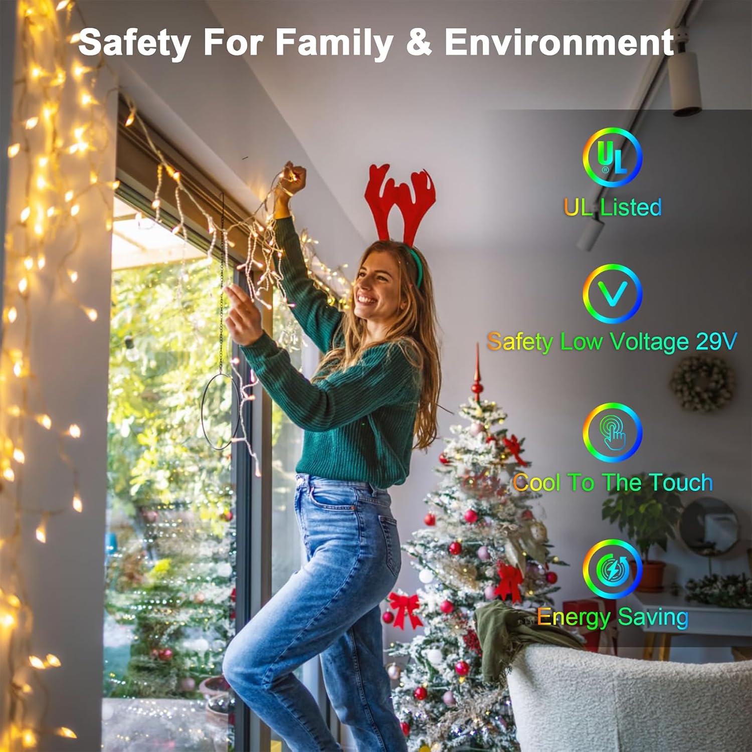 • Our LED Christmas lights are constructed for both safety and durability. The soft and gentle illumination is designed with families in mind, operating on a safe 29v low voltage. This, paired with cool-touch technology and minimal heat emission, makes our lights not only safe for interaction from children and pets but also a worry-free option for your decorative needs.