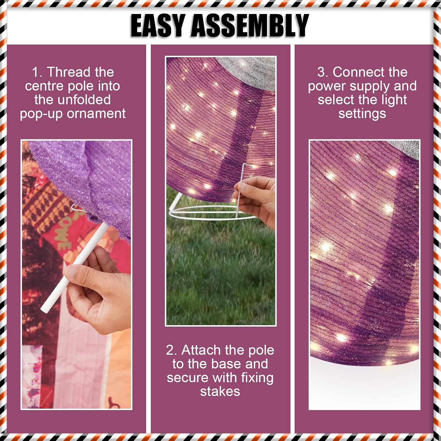 • Easy Setup: With collapsible frames, these ornaments are simple to assemble and disassemble, making them a convenient choice for your festive decor