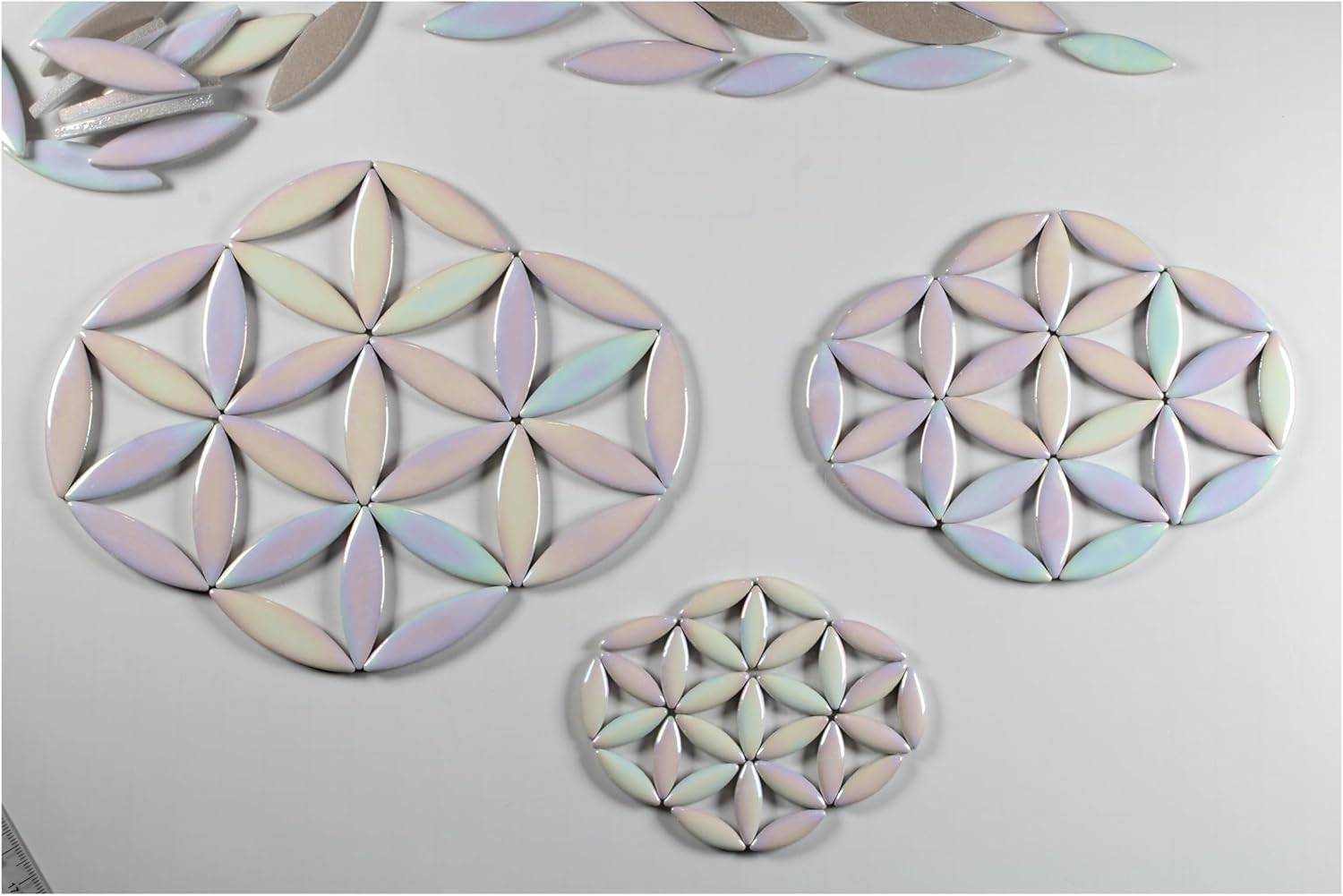 • Vibrant Colors; 28 Solid (3 Iridescent & Metallic Gold & Silver)11 Mixes; Biggest Selection of Ceramic Tiles for Crafts; Unique Petal Shape Ideal for Creating Floral Patterns, Sacred Geometry, Mosaic Decor & Custom Mosaic Art