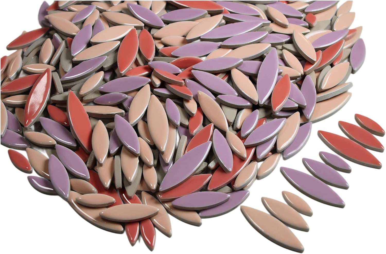 VerzTile Mosaic Tiles for Crafts - Petal Shaped Ceramic Tile Craft Hobbies & Art Projects 39 Color Options Endless Creativity DIY Design (Pinks & Purple Mix)