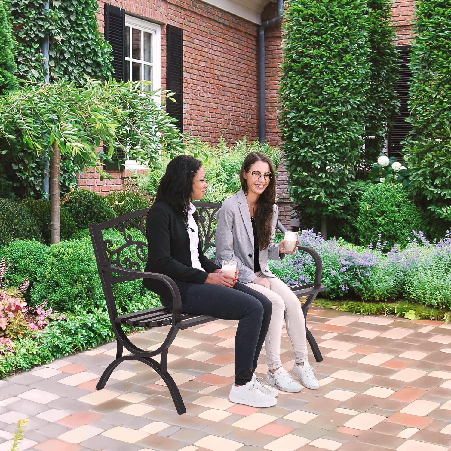 • Sturdiness: The Park Bench is made of reinforced steel to ensure sturdiness and stability, durable and the Metal Bench perfect for use for years.The Garden Bench is powder coated with rust-resistant finish, super smooth. The bench comfortably seats two adults and bears weight to 485 lbs.