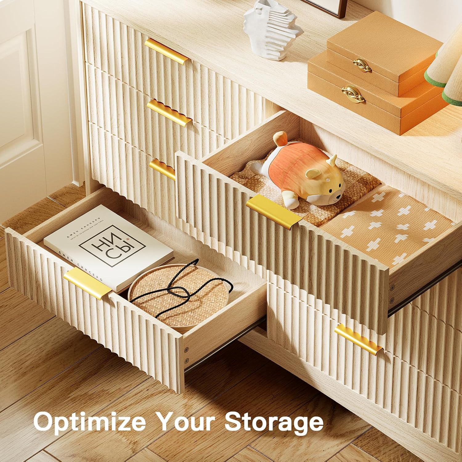 Pipishell Fluted 8 Drawers Dresser, Modern Wood Chest of Drawers, Dressers with Round Edge Design, Dresser TV Stand, Wood Drawer Organizer for Bedroom, Living Room, Hallway, Natural Oak