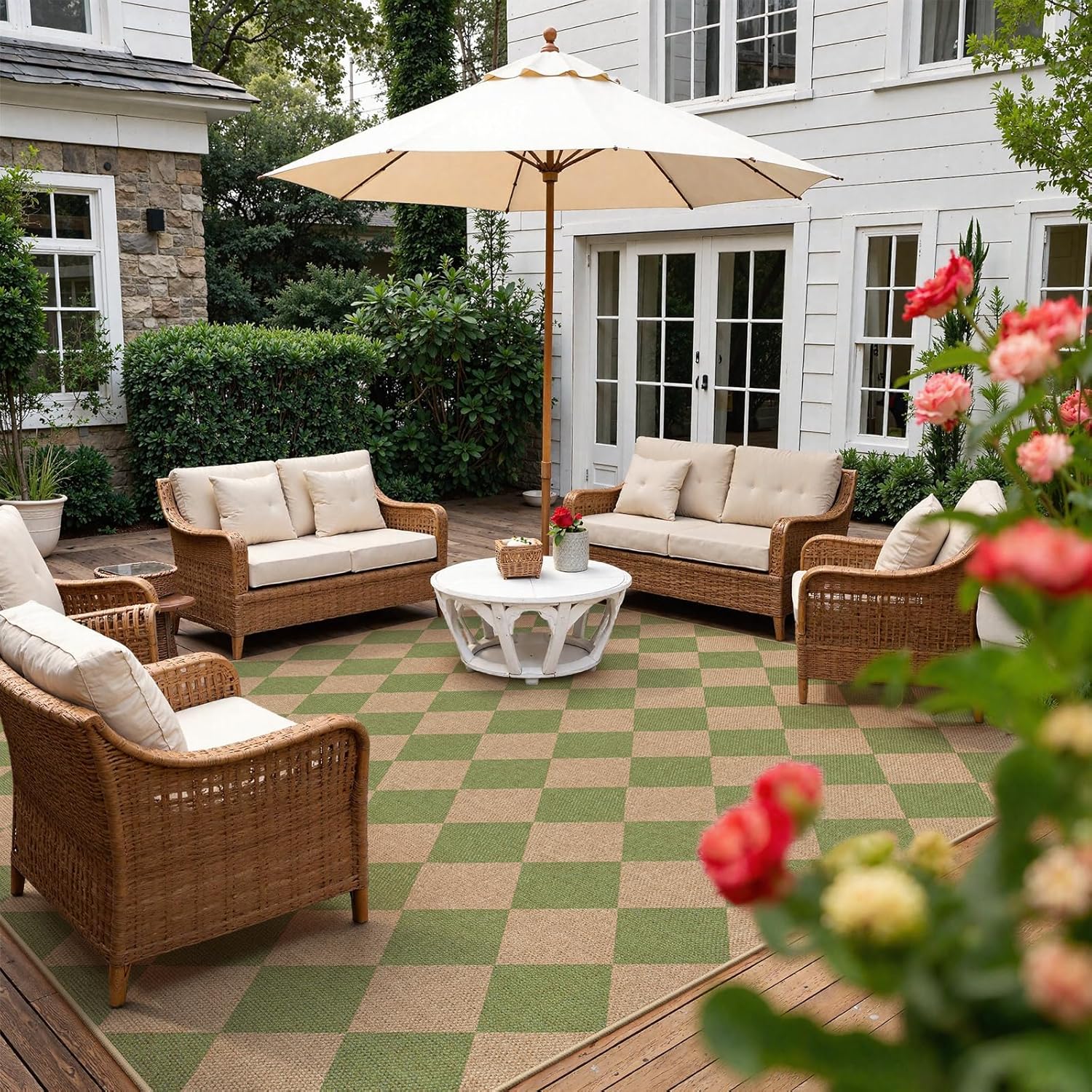 • Modern Checkered Rug: Showcasing checkerboard in green and natural colors, purposely distressed and faded geometric checkerboard design, it makes a great option for anchoring modern farmhouse aesthetics