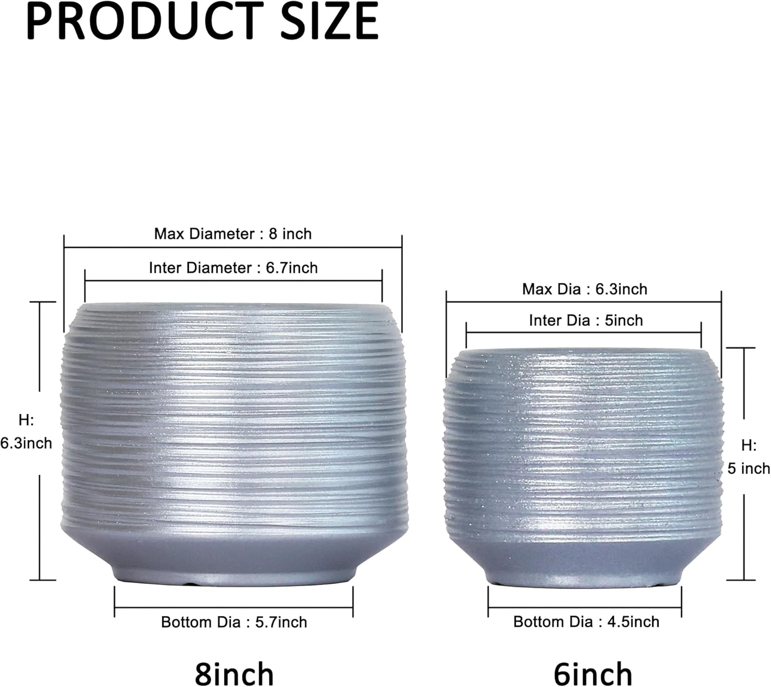 • 【Modern Decorative Planters】:Designed with a raised line-textured finish and modern silhouette, these indoor ceramic plant pots add visual interest to any space—whether styled as 6 inch decorative plant pots or 8 inch flower pots on countertops and shelves.