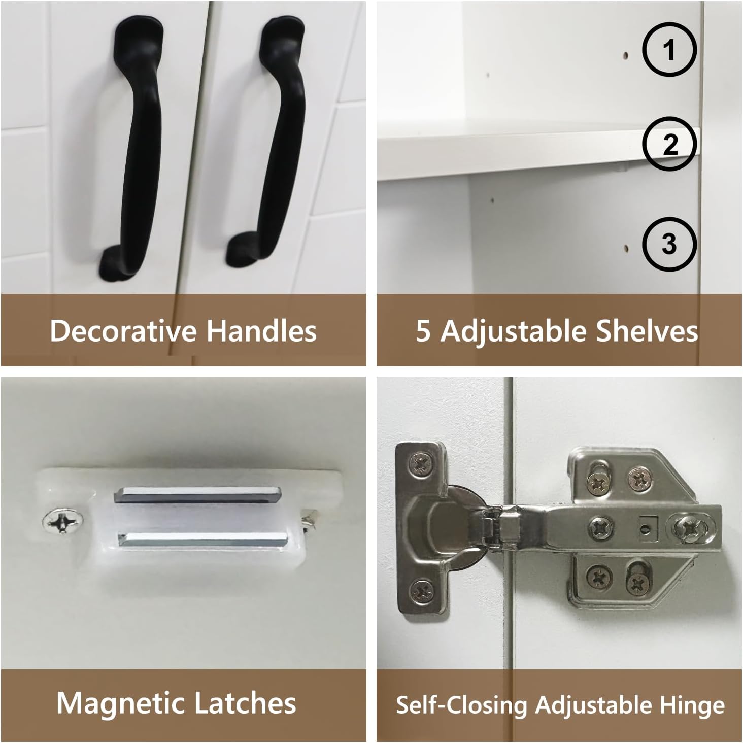 • Multifunctional Cabinet: Our 2 door wooden cabinet features a freestanding design, which you can use for a pantry cabinet, food cabinet, kitchen cabinet, kitchen cupboard, utility cabinet, laundry room cabinet, bathroom cabinet, bedroom wardrobe, bookcase, tool cabinet, file cabinet, appliance cabinet, etc. It will be your good choice for storage and organization