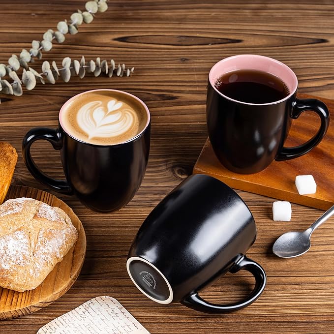 • Comfortable Grip & Sleek Matte Black Style: Featuring an ergonomic, easy-grip handle for a secure hold and a smooth rim for enjoyable sipping. The modern matte black exterior adds elegant style to any table, while the wide, stable base prevents spills.