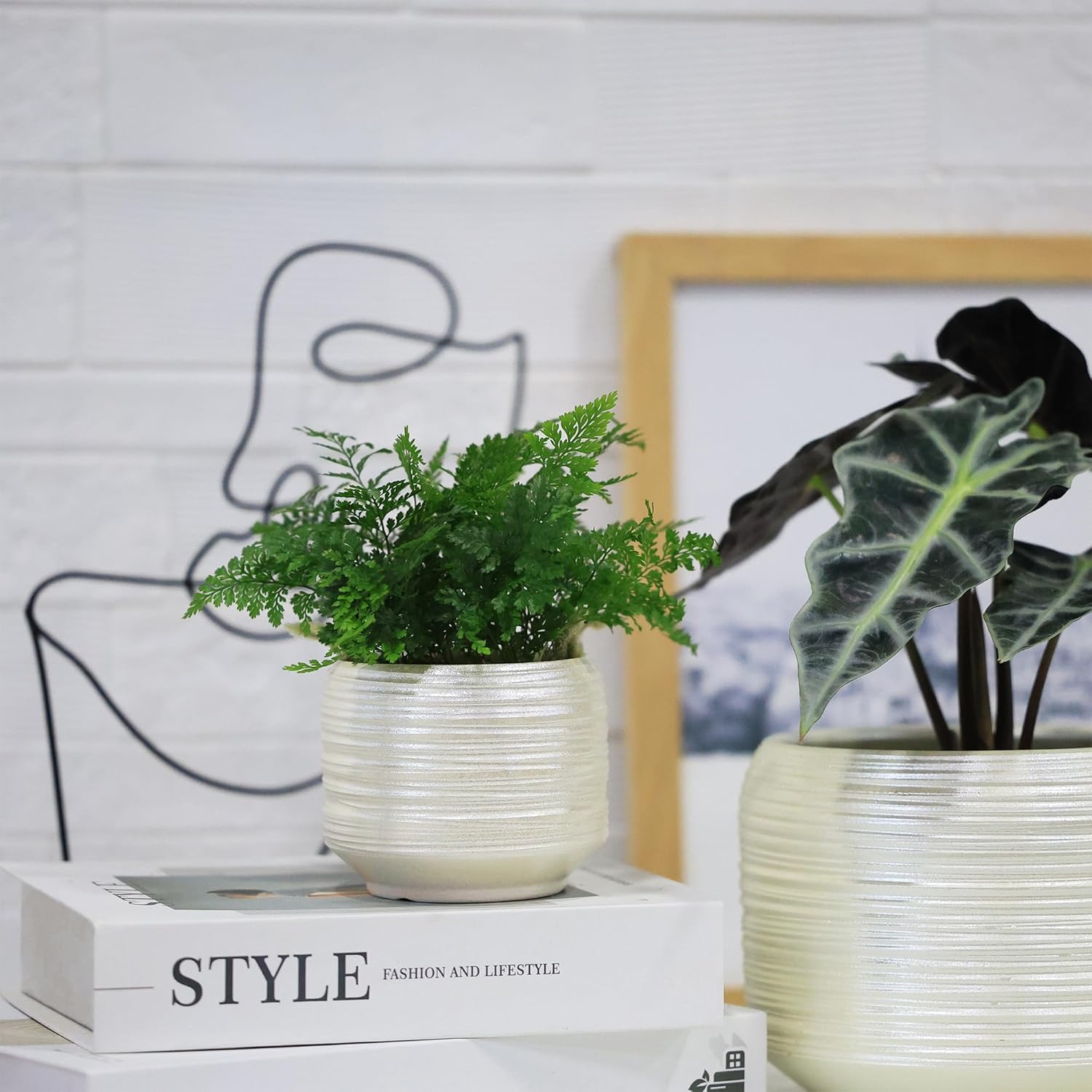 • Textured Ceramic Design: Crafted from high-quality ceramic with a raised line-textured finish, these pots add a touch of elegance to any space. Their minimalist design complements various decor styles, including modern, boho, or Scandinavian interiors.