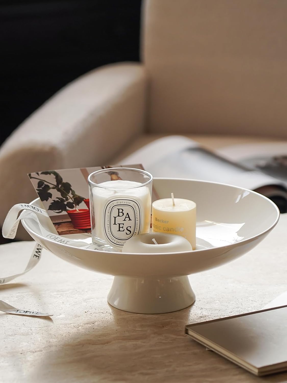 • MULTI-FUNCTIONAL - This footed bowl is large and sturdy enough to hold fruits, veggies, bread, snacks, or candy in the kitchen. It would also be suitable as a modern key bowl for an entryway table to hold keys and small items. Beyond practicality, you can use it as a decorative bowl, filling it with rattan balls, candles, dried flowers, or seasonal treasures like spring eggs or Christmas balls to add a festive touch to your living room or bedroom.