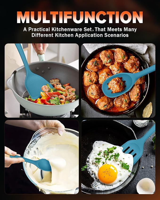 • Gentle on cookware: With smooth edges, our silicone Cooking Utensils protects non-stick cookware from scratches and damage