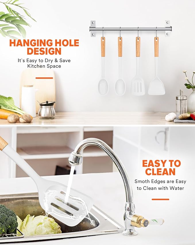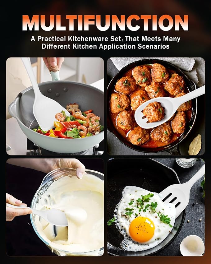 • Gentle on cookware: With smooth edges, our silicone Cooking Utensils protects non-stick cookware from scratches and damage